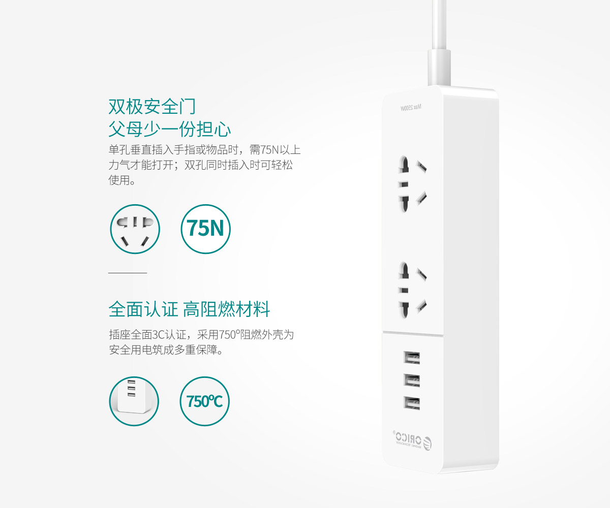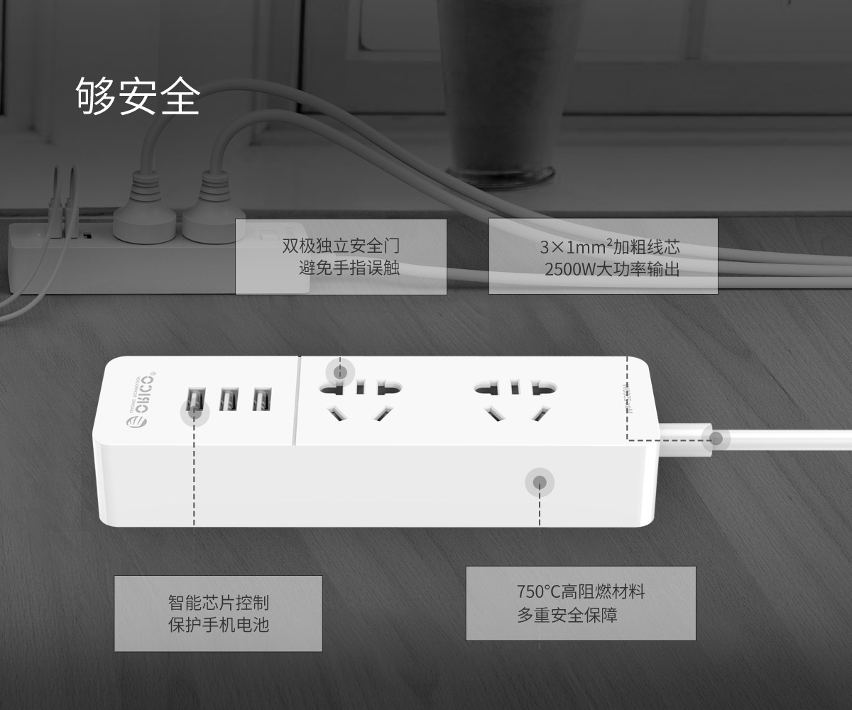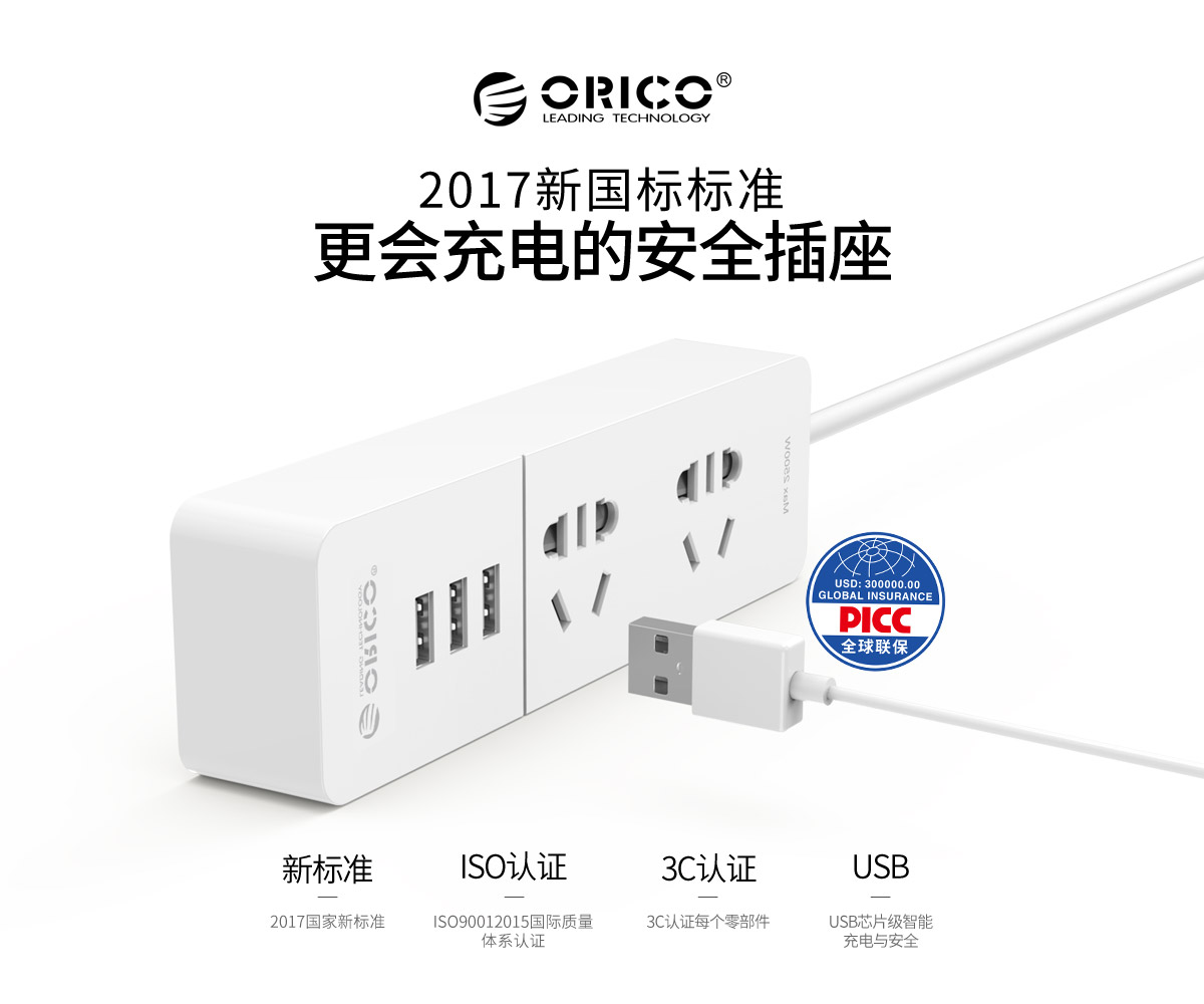 新國(guó)標(biāo)2AC口3usb便攜桌面式排插