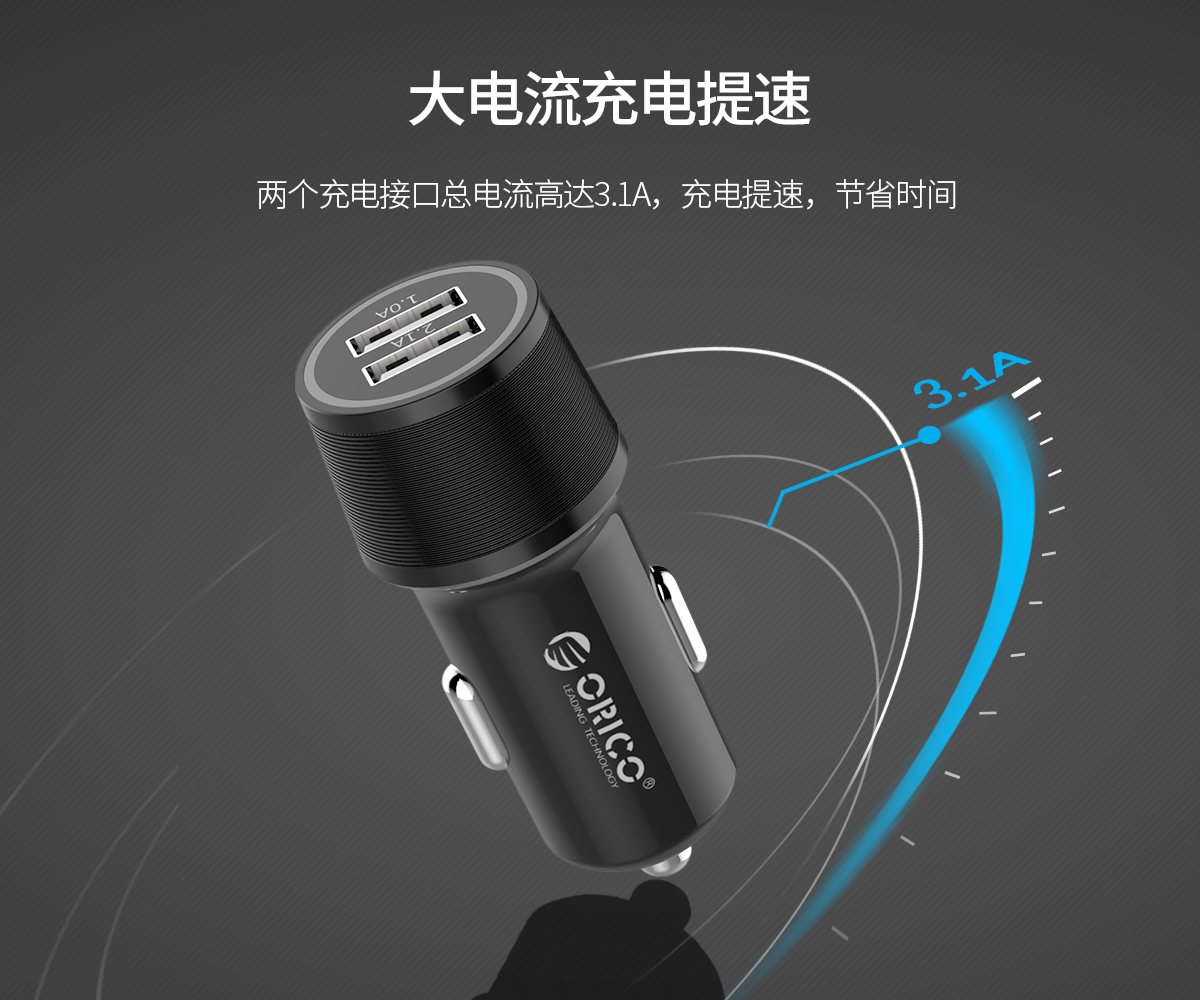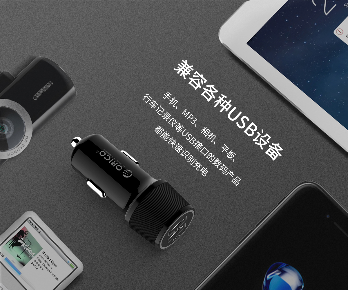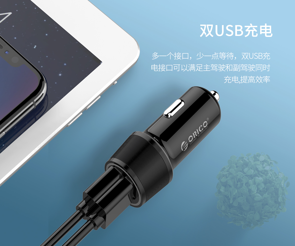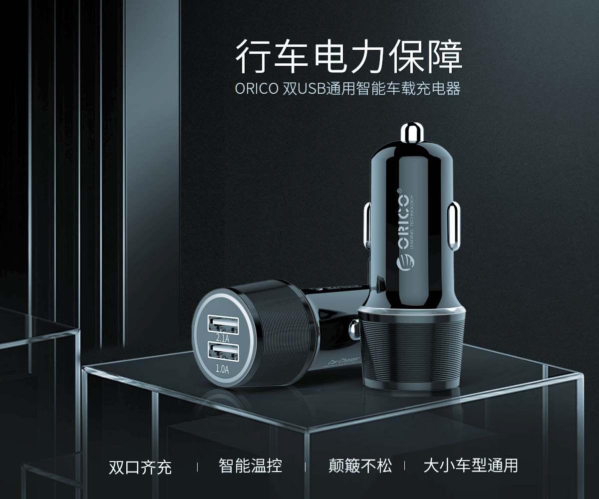 車載點煙口一拖二USB口抗干擾多重保護充電器