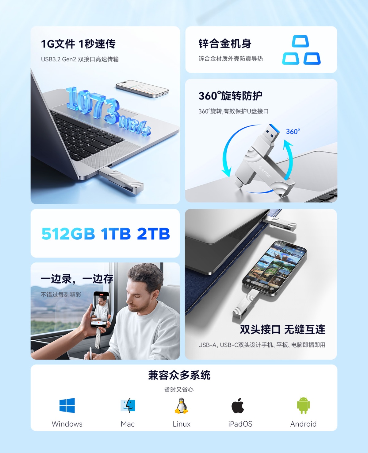 雙接口高速固態(tài)U盤(帶掛繩口)