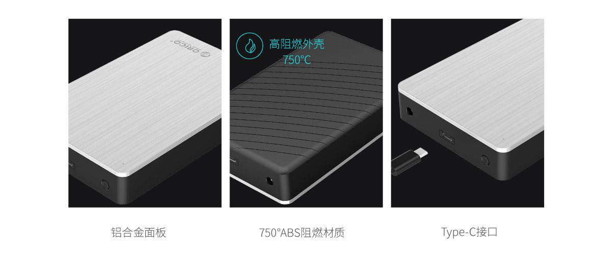 面板為鋁合金材質鍛造而成,品質和觸感有所保證。四面加上背后的“劃線式”設計,除了散熱出眾外,還是用ABS材質打造。確保了抗震耐腐蝕,同時也保證您的數據安全。