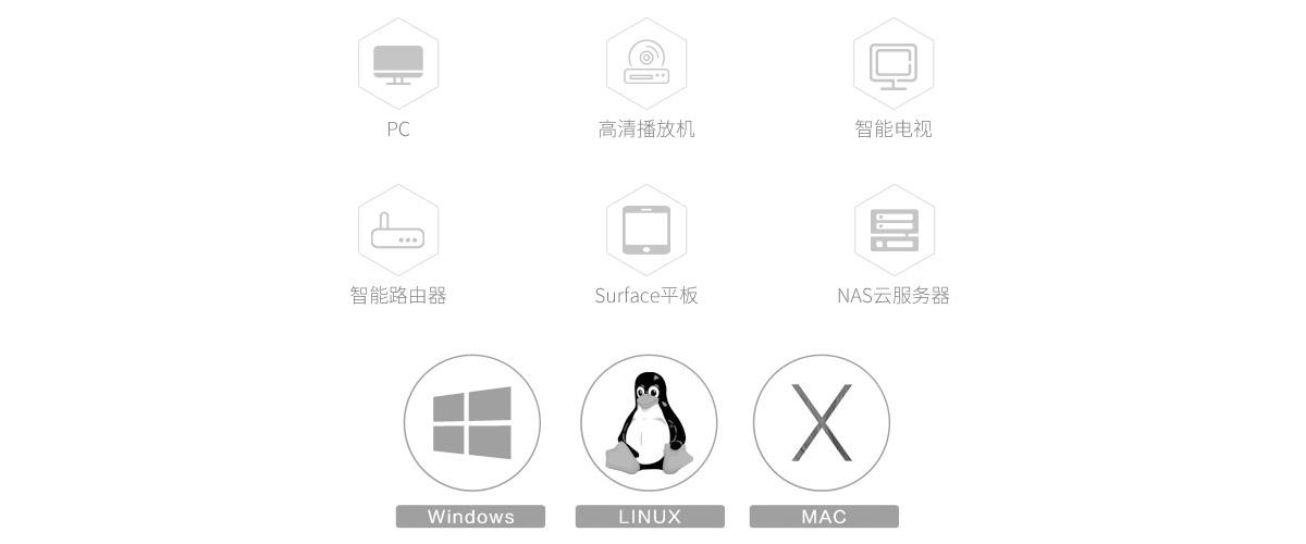 支持Windows/Linux/Mac等主流操作系統,除了鏈接臺式機筆記本,也可以Surface Pro/智能電視/高清智能機頂盒/智能播放器等日常使用的終端設備。