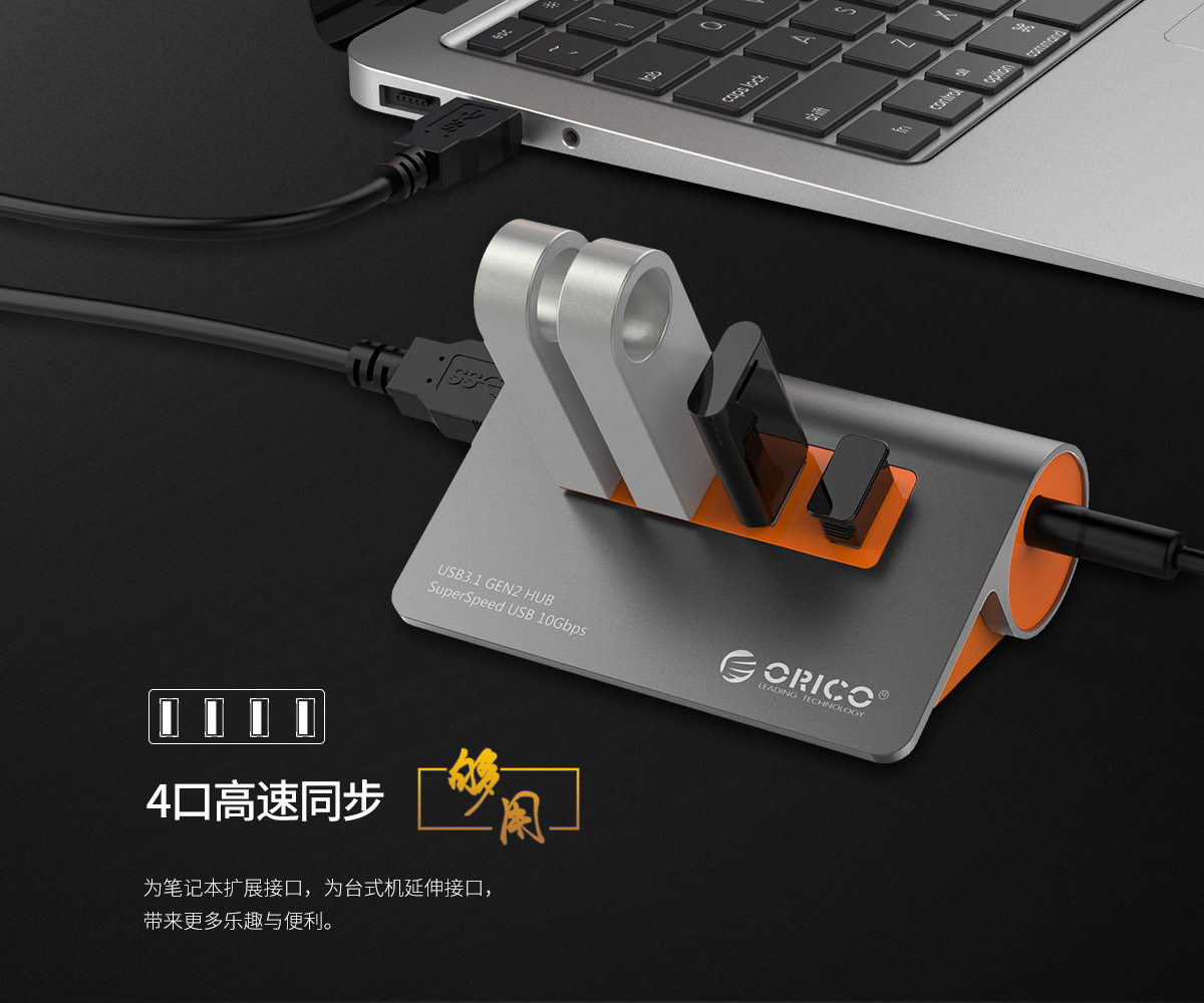 4口USB3.1 Gen2 高速集線器,10Gbps傳輸速率