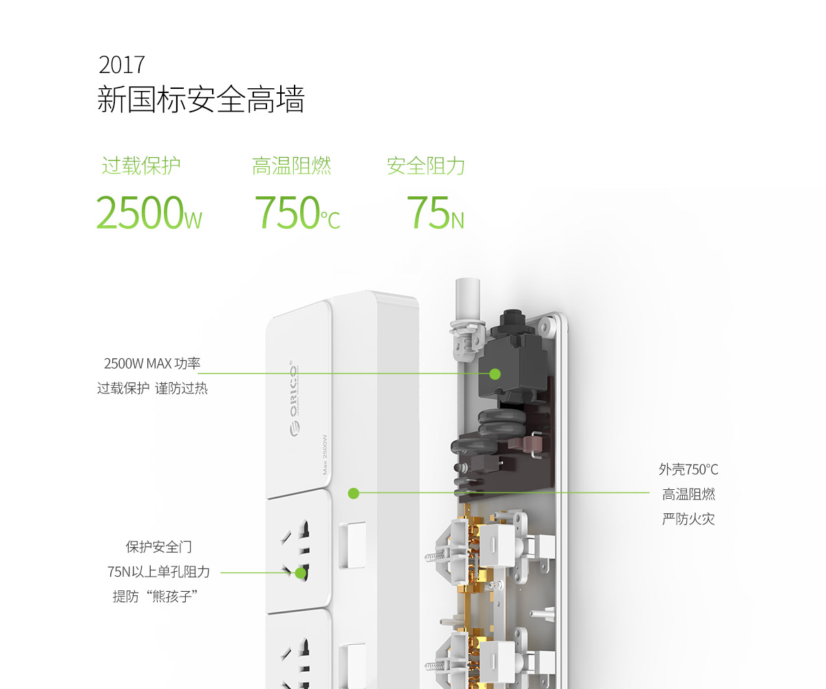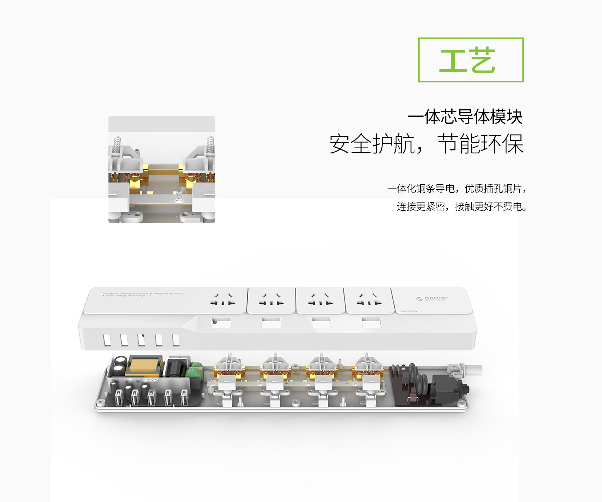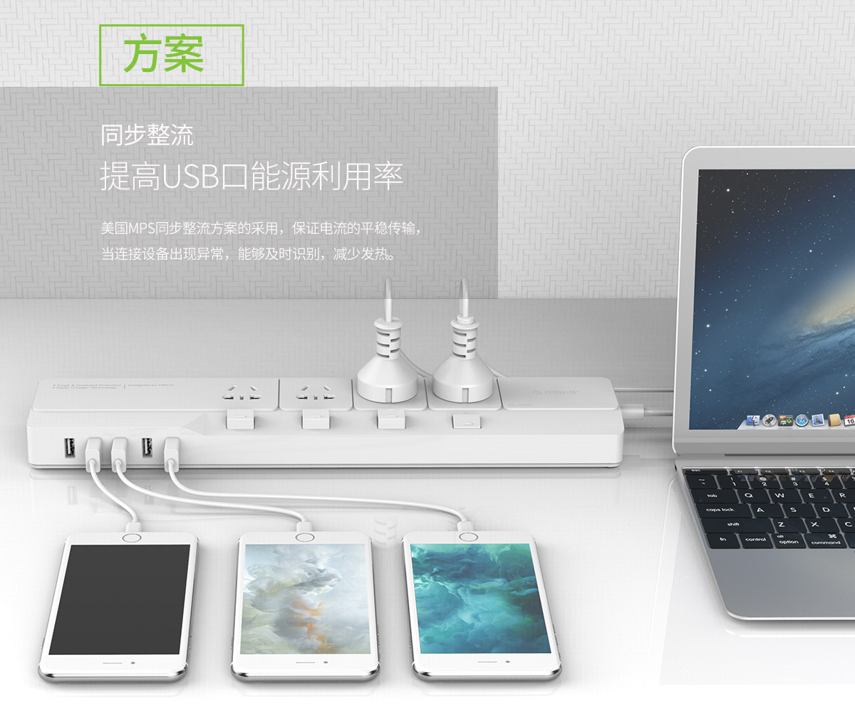 分控智能排插 可分控4個插頭,5個快充USB接口 環保材料