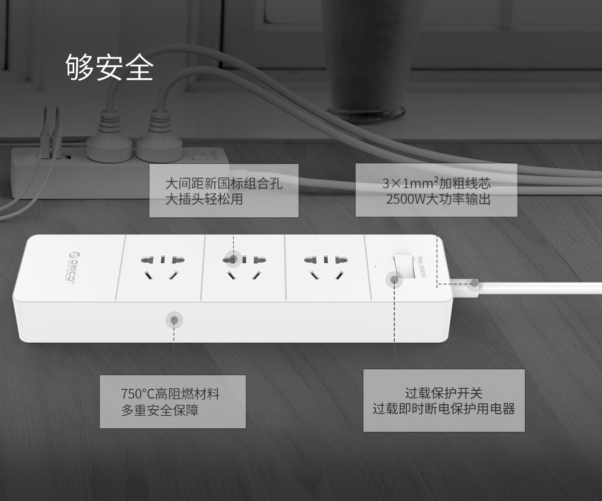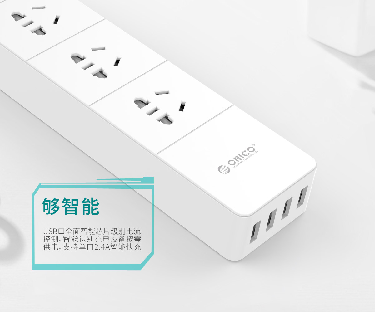 便攜桌面式排插 4口USB+3A接口 750℃耐高溫 單口支持2.4A