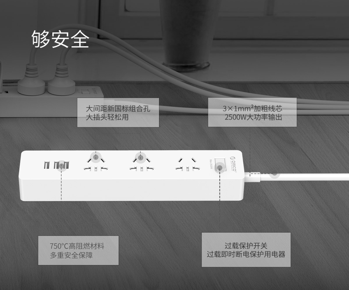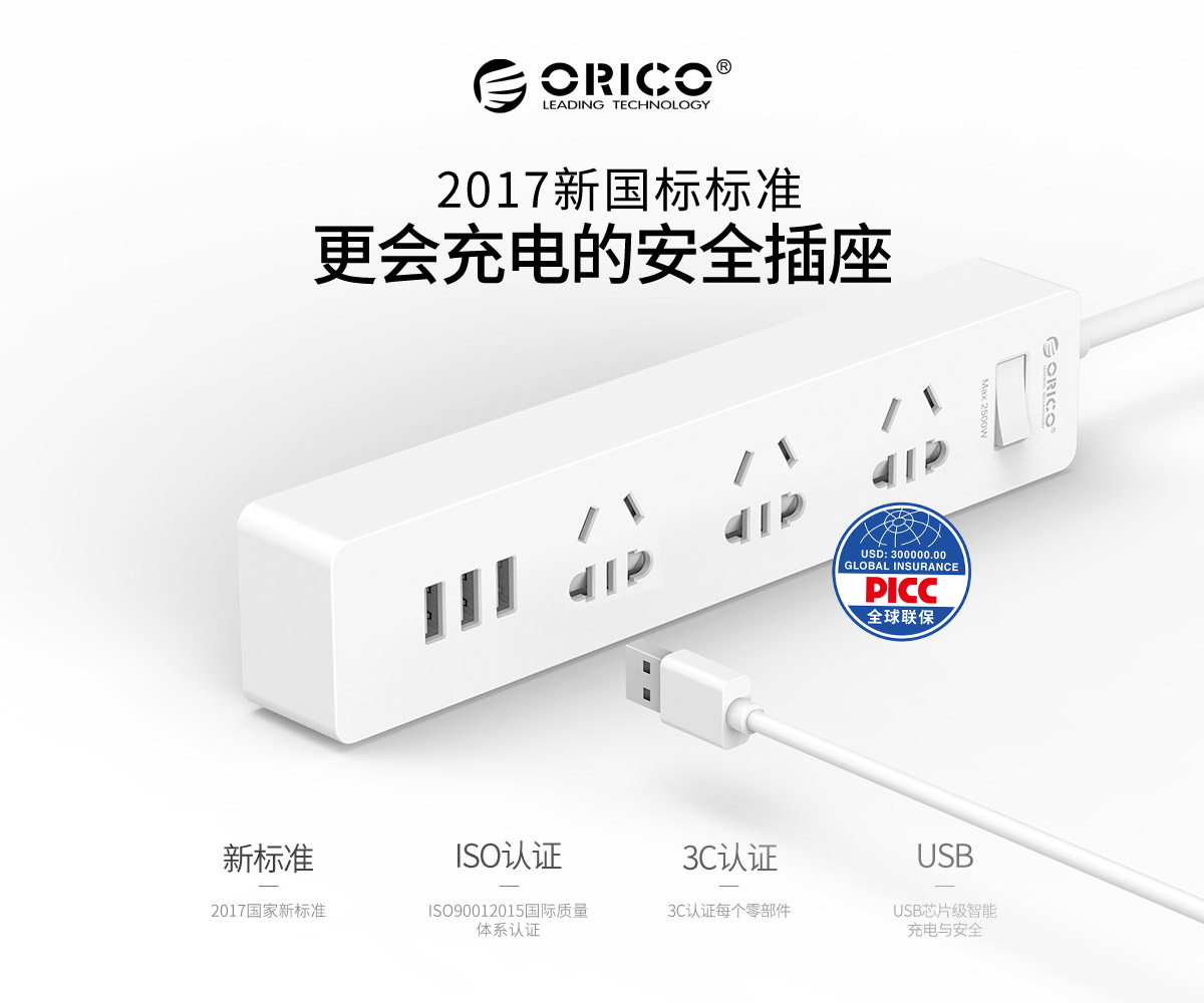 簡約款新國標(biāo)3AC口3usb便攜桌面式排插