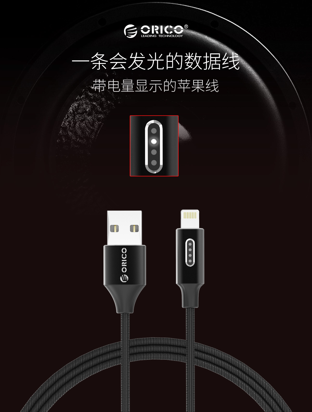 Type-A轉蘋果Lightning接口充電數據線,帶電量顯示
