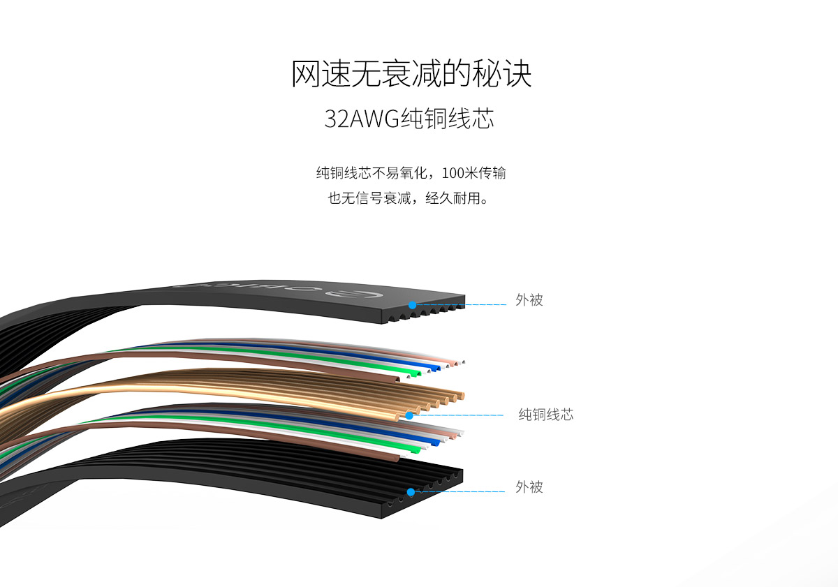 純銅線芯六類千兆網(wǎng)線(扁線)