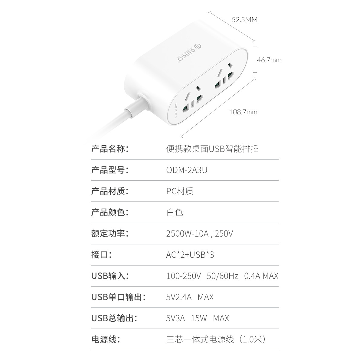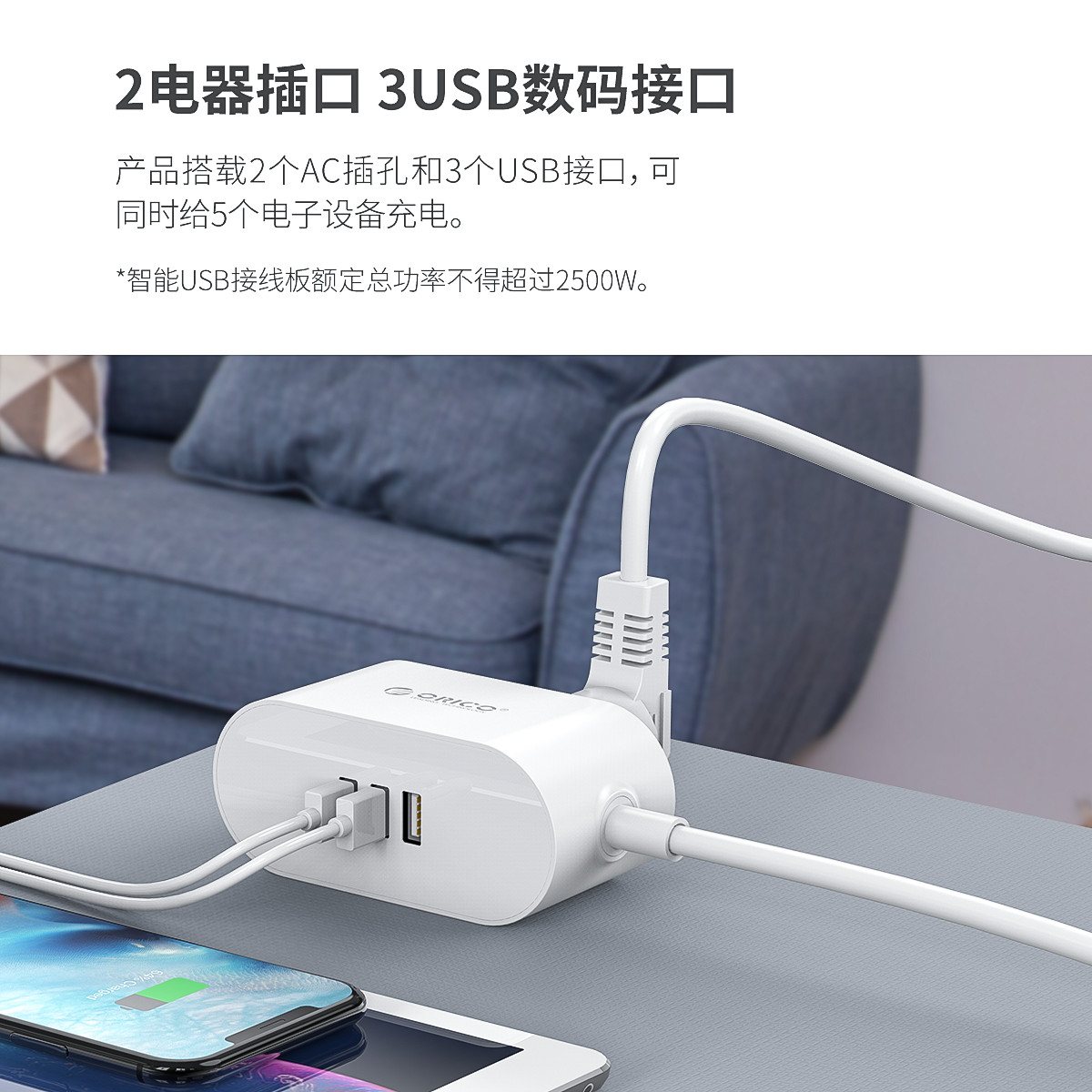 雙面款2AC 3USB智能便攜排插