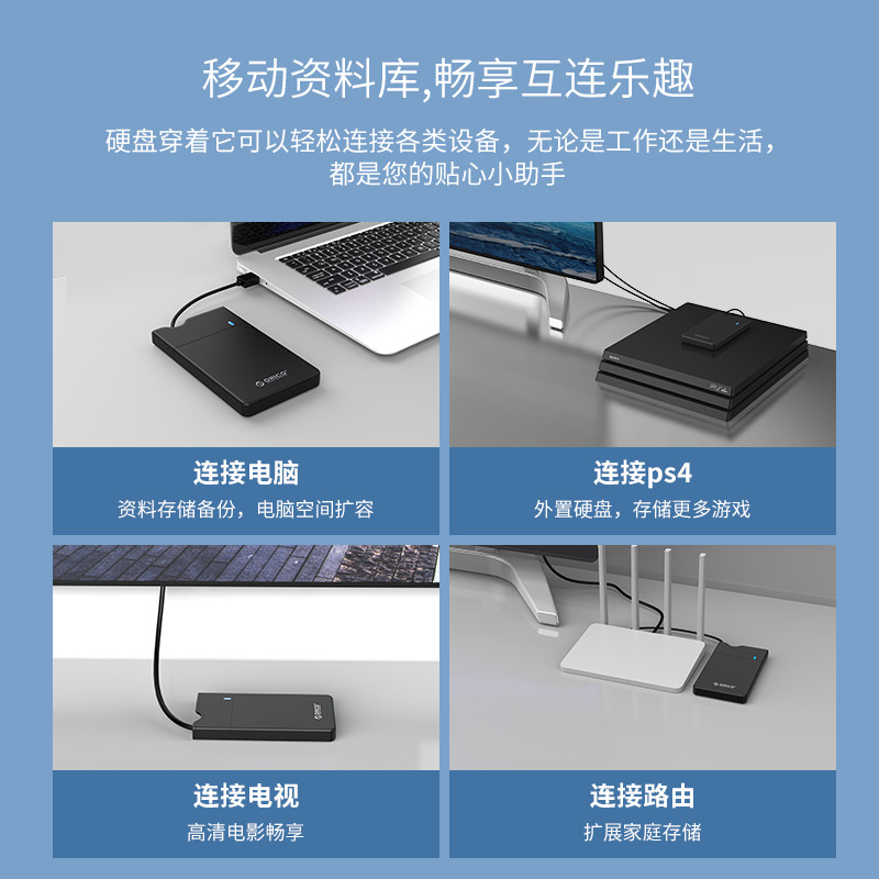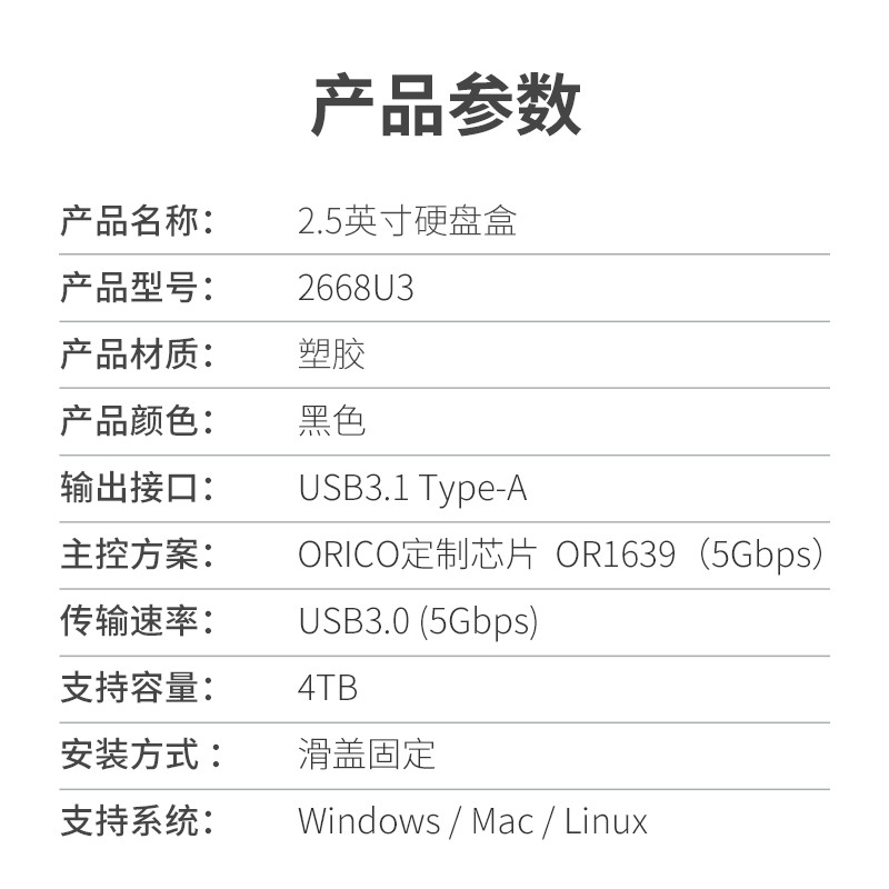 USB3.0接口,線盒一體,輕松收納,免工具安裝,滑蓋設(shè)計,支持4TB大容量