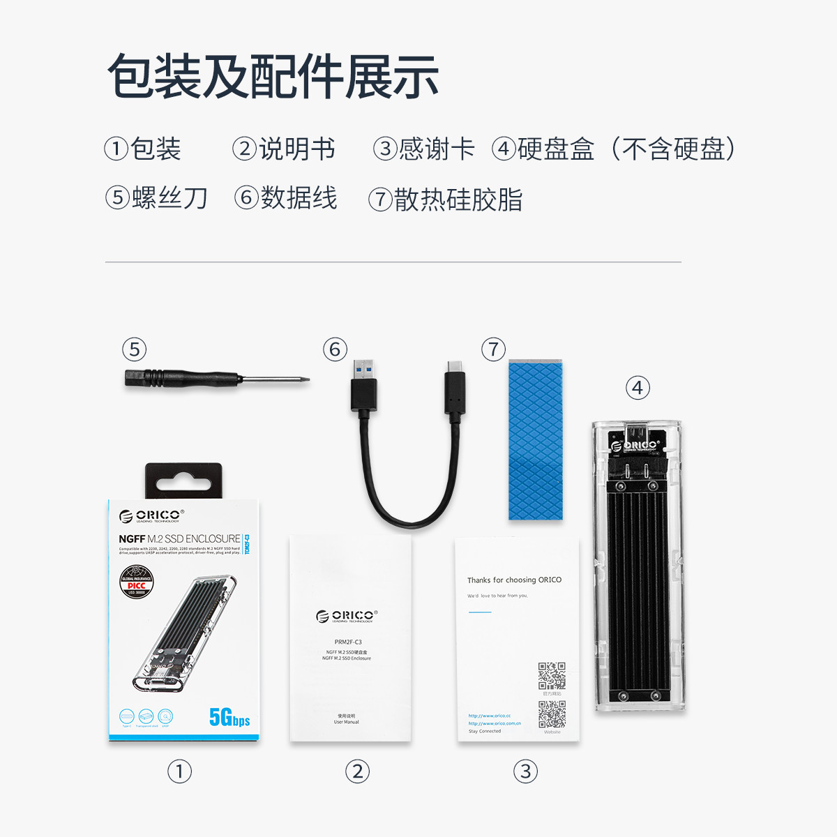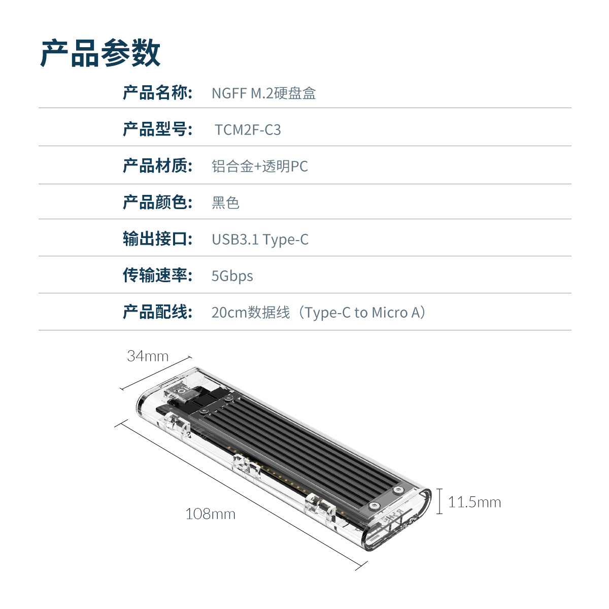 NGFF M.2透明硬盤盒,免工具Type-C接口透明硬盤盒