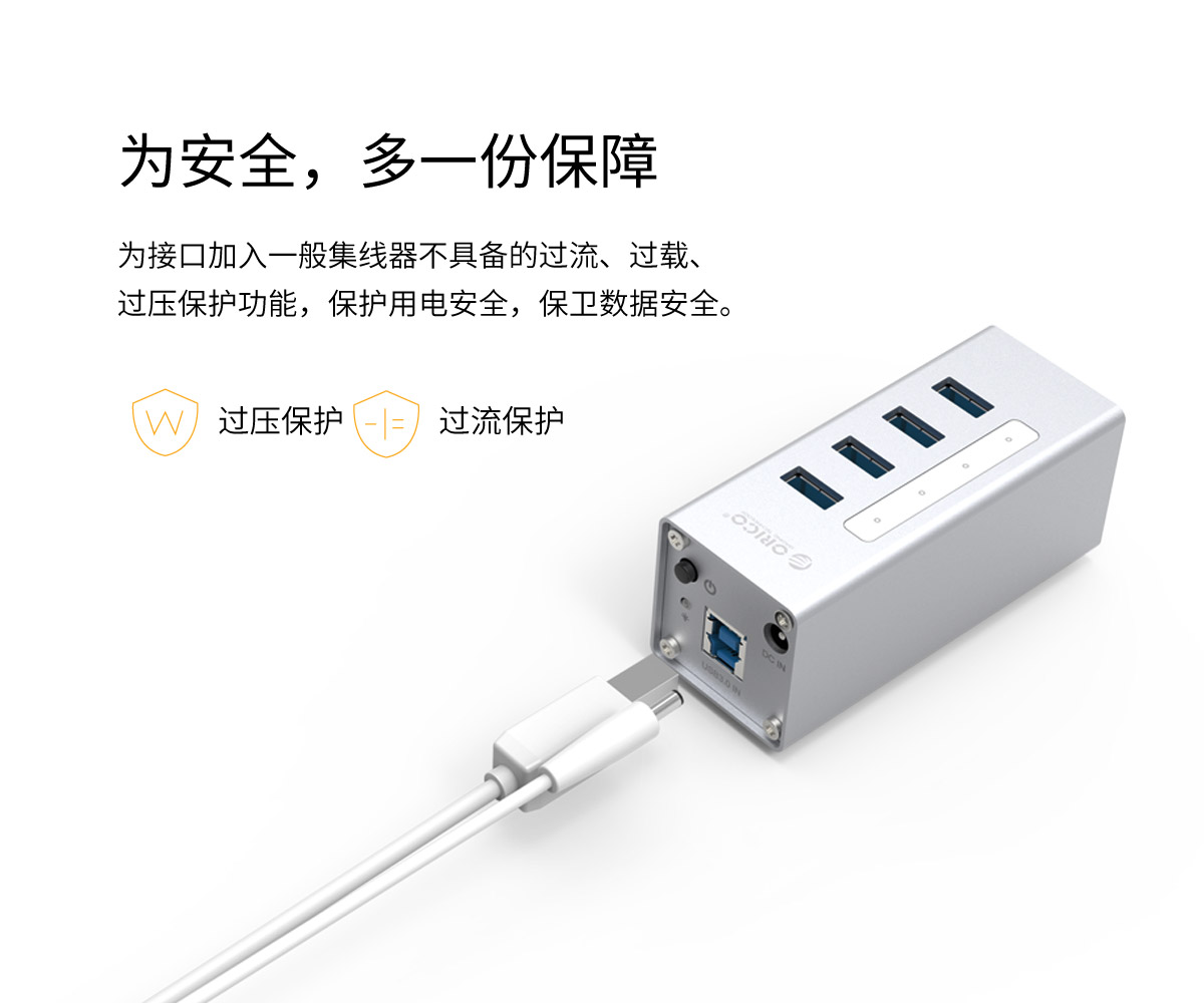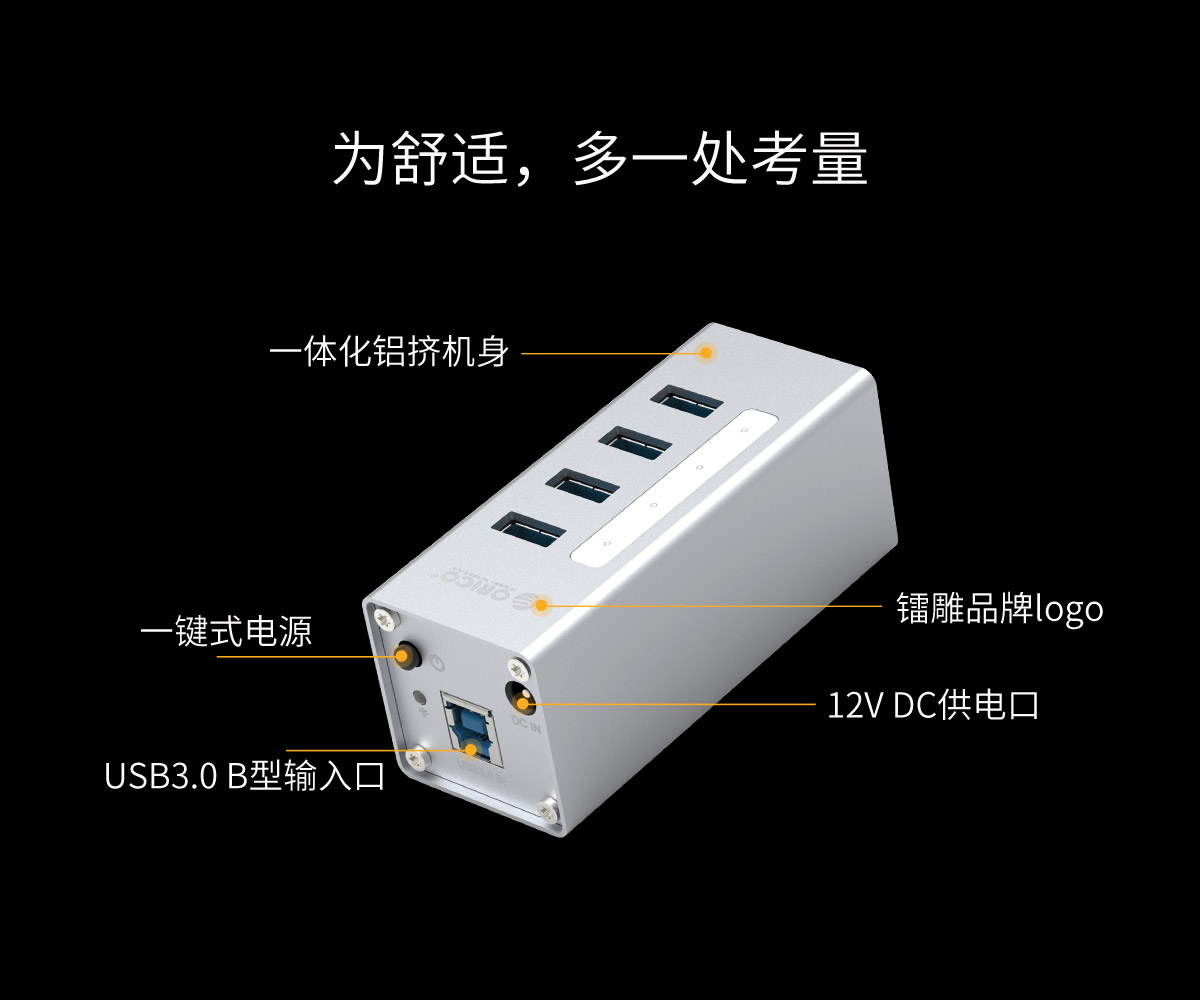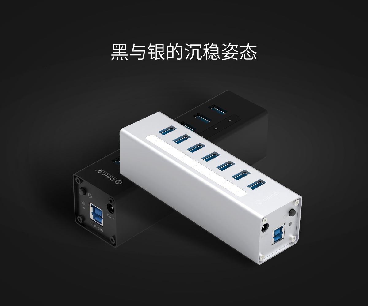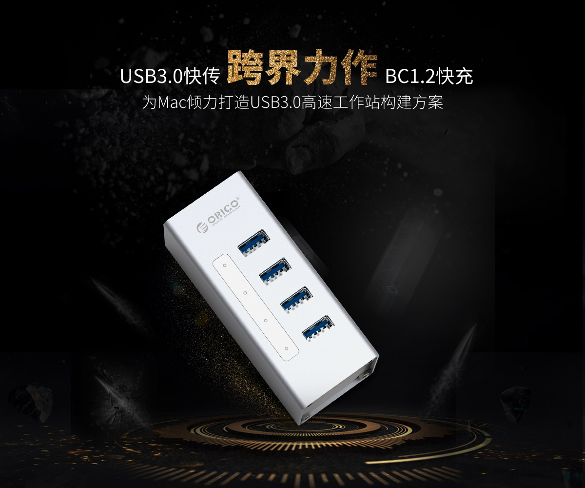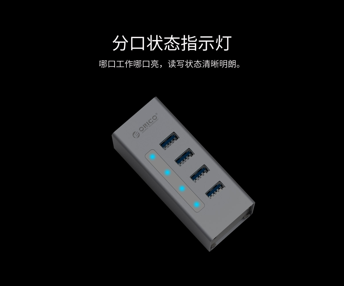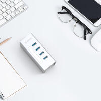 鋁合金4口USB3.0桌面集線器,24W獨立供電