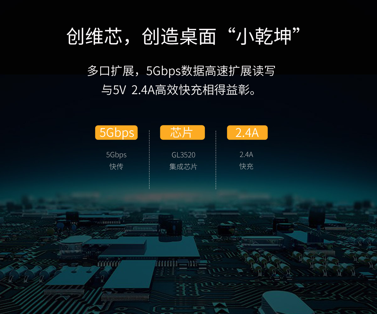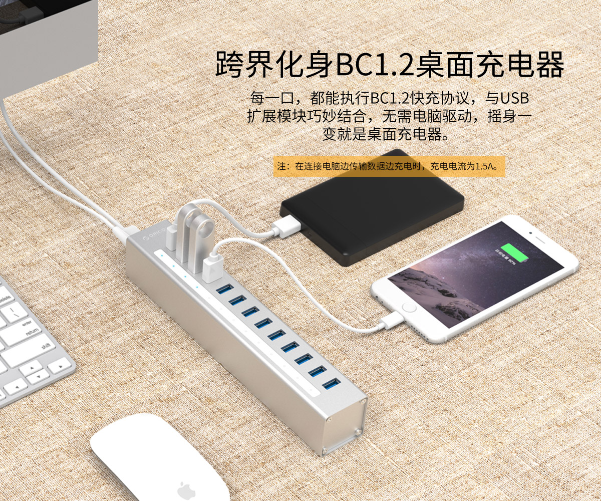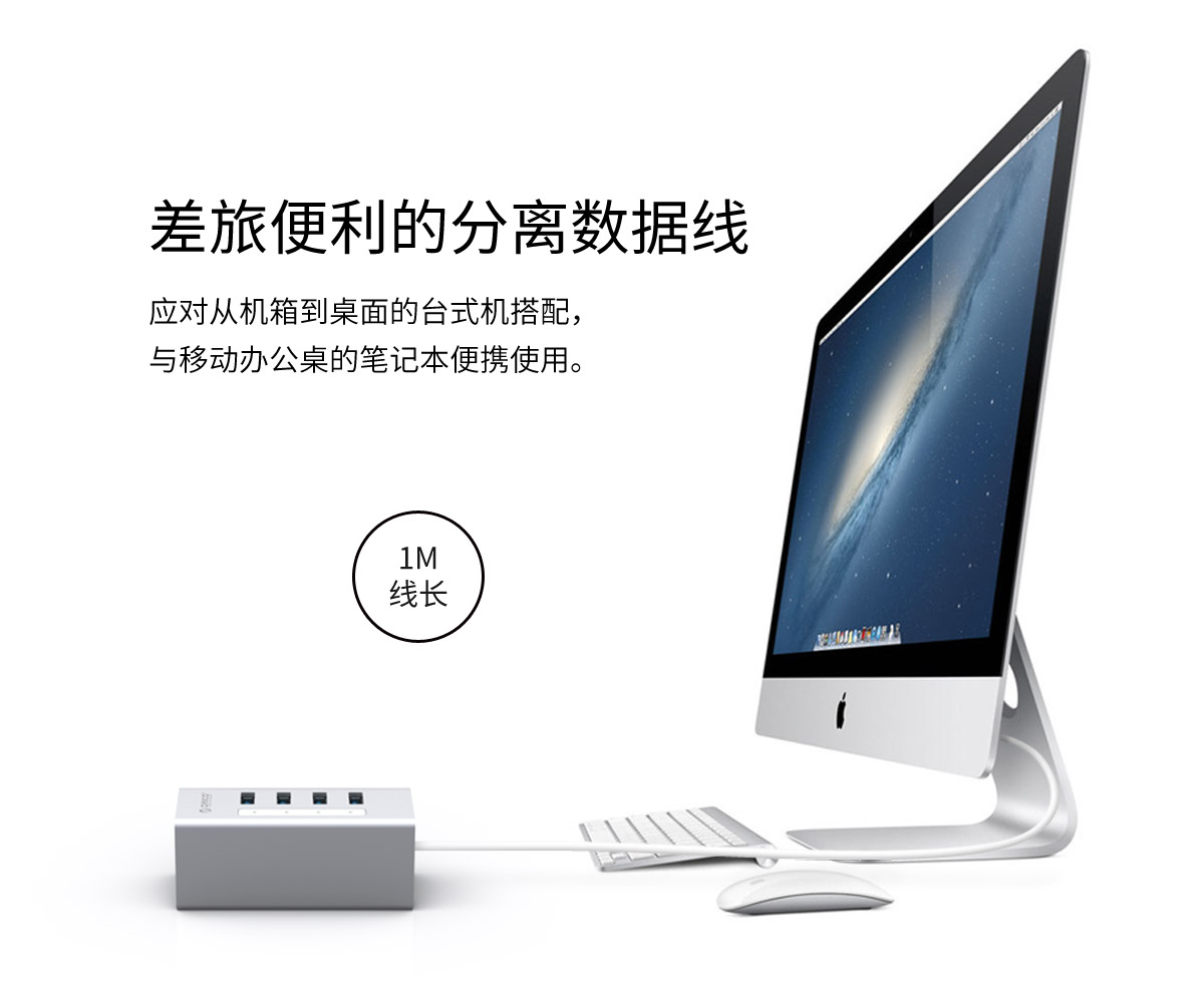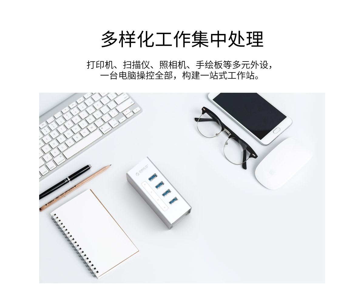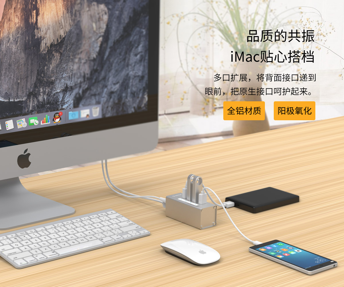 鋁合金4口USB3.0桌面集線器,24W獨立供電