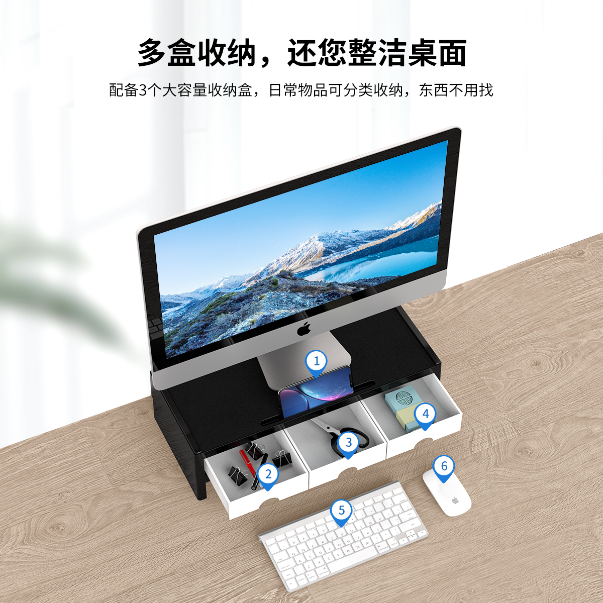 多功能顯示器增高架,配備3個大容量收納盒,日常物品可分類收納,采用厚實ABS材質(zhì)打造