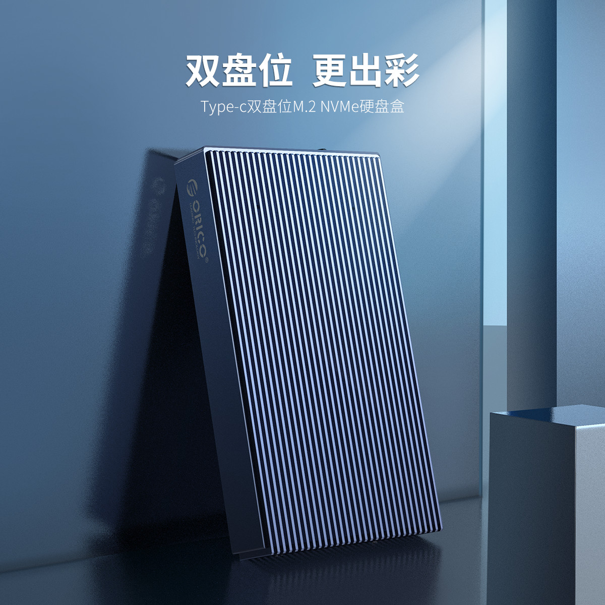 Type-c雙盤位M.2 NVMe硬盤盒,利用條紋散熱棱擴(kuò)大散熱面積,雙盤位4TB