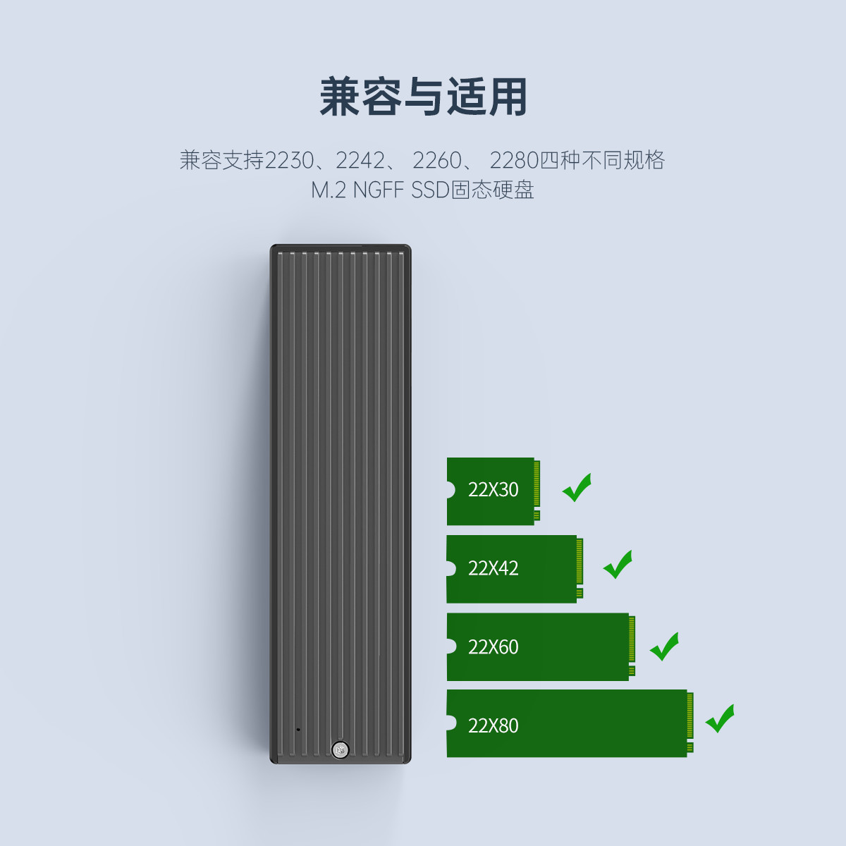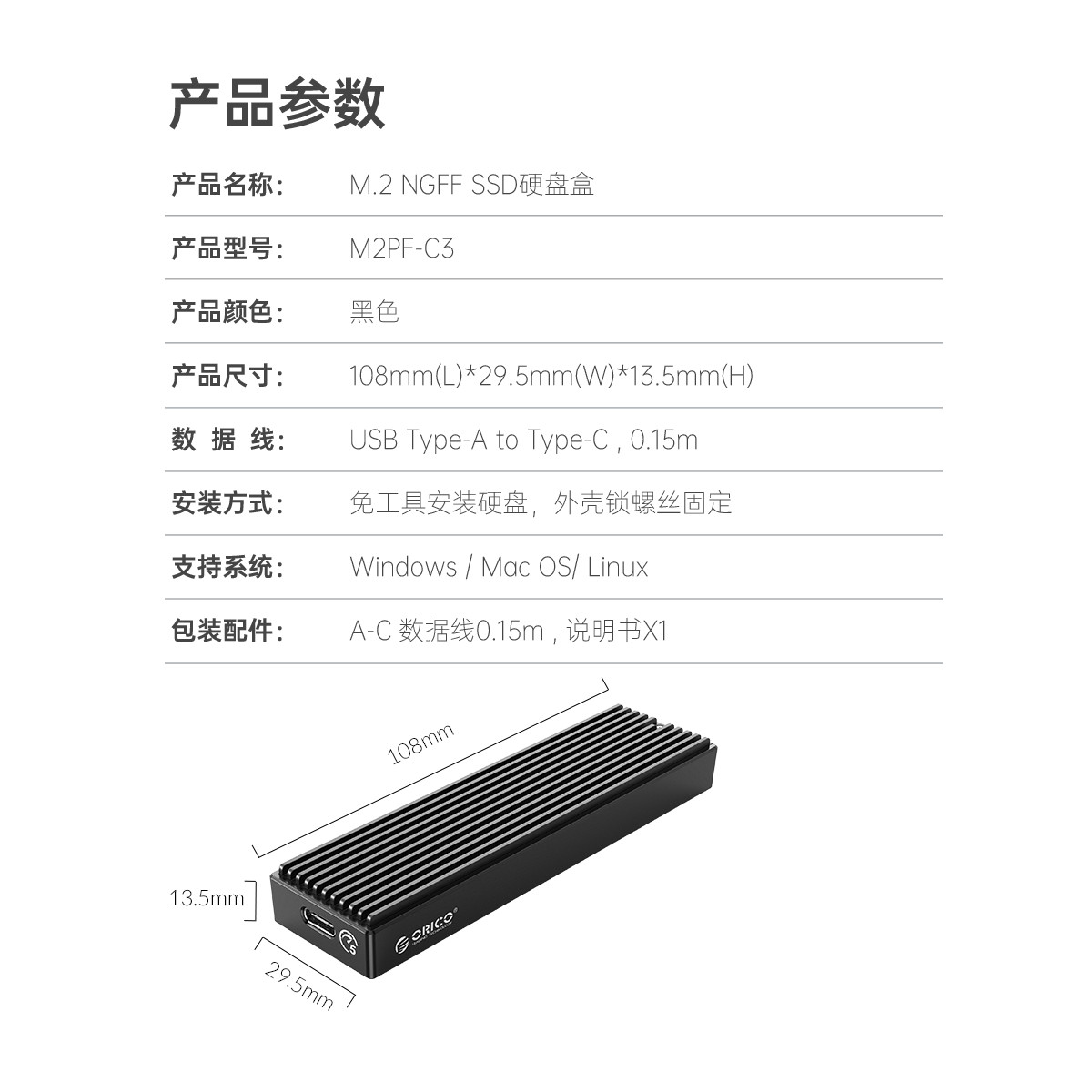 5Gbps,USB3.1 Type-C1,NGFF硬盤盒,機身采用ABS材質,上方覆有金屬散熱片