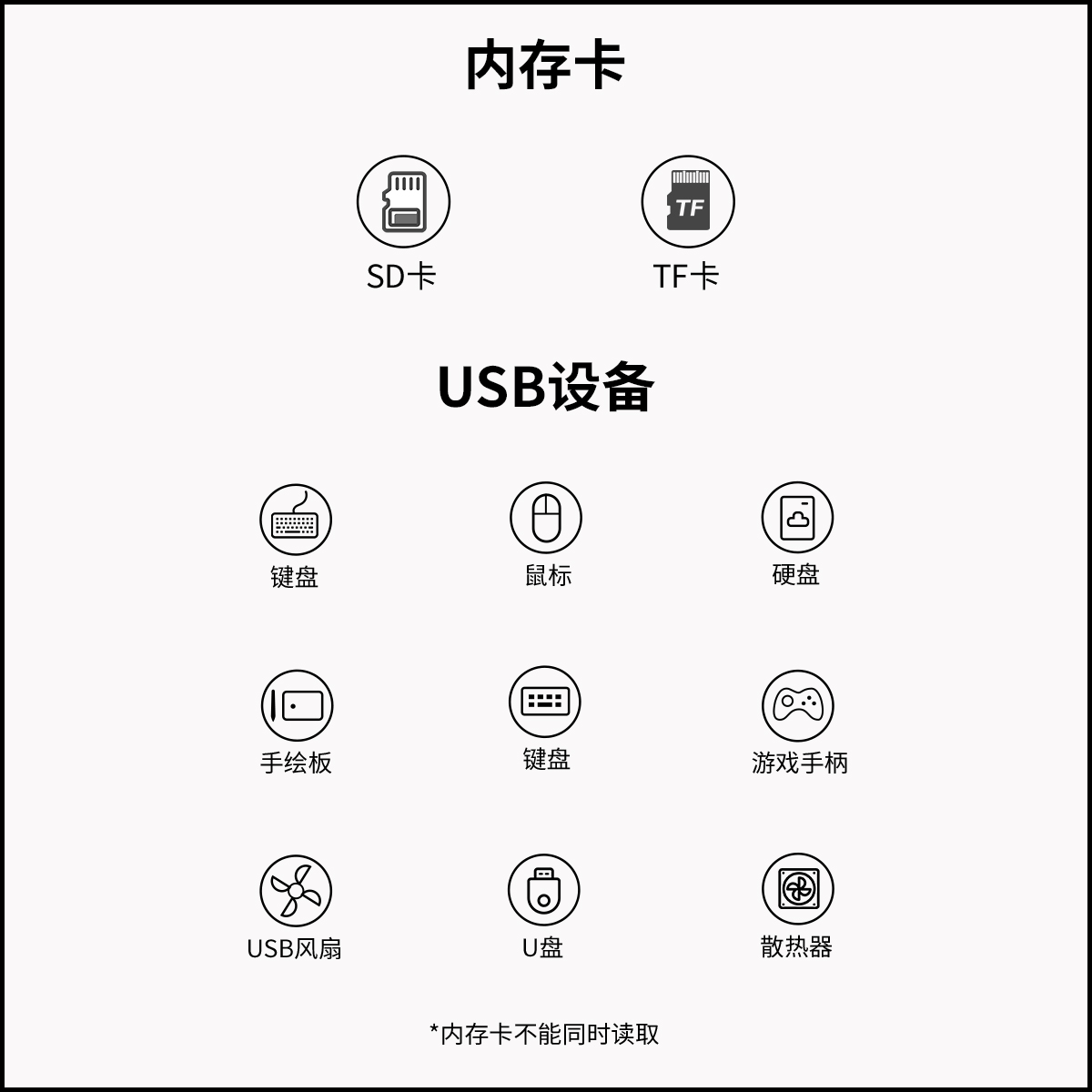 支持同時擴展6個USB,設備又能讀取SD/TF卡,5Gbps傳輸速率,支持2T大容量存儲卡、移動硬盤使用