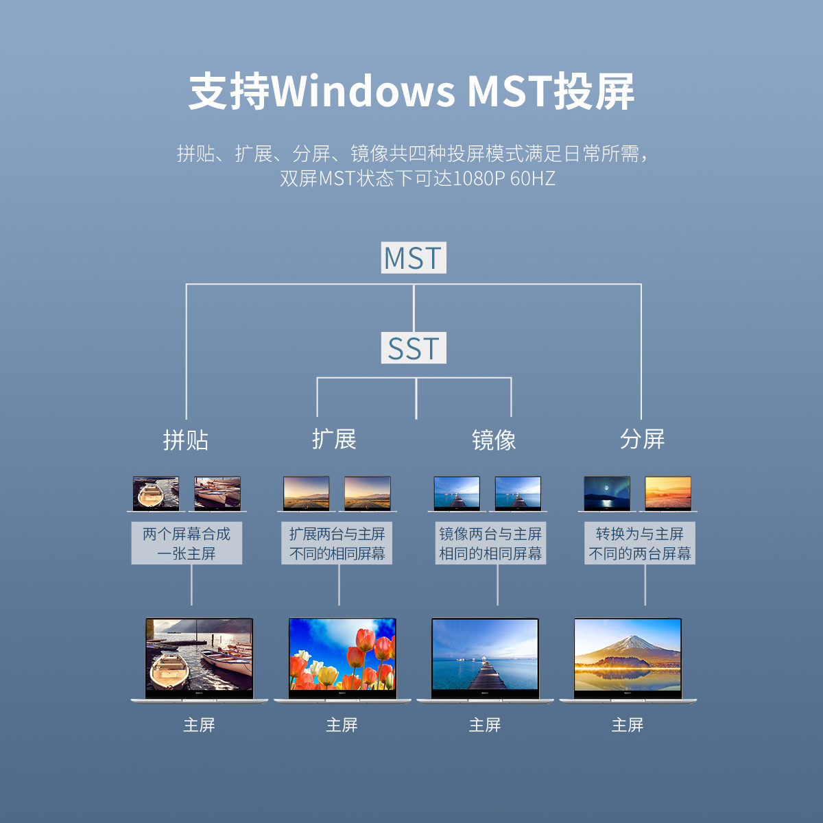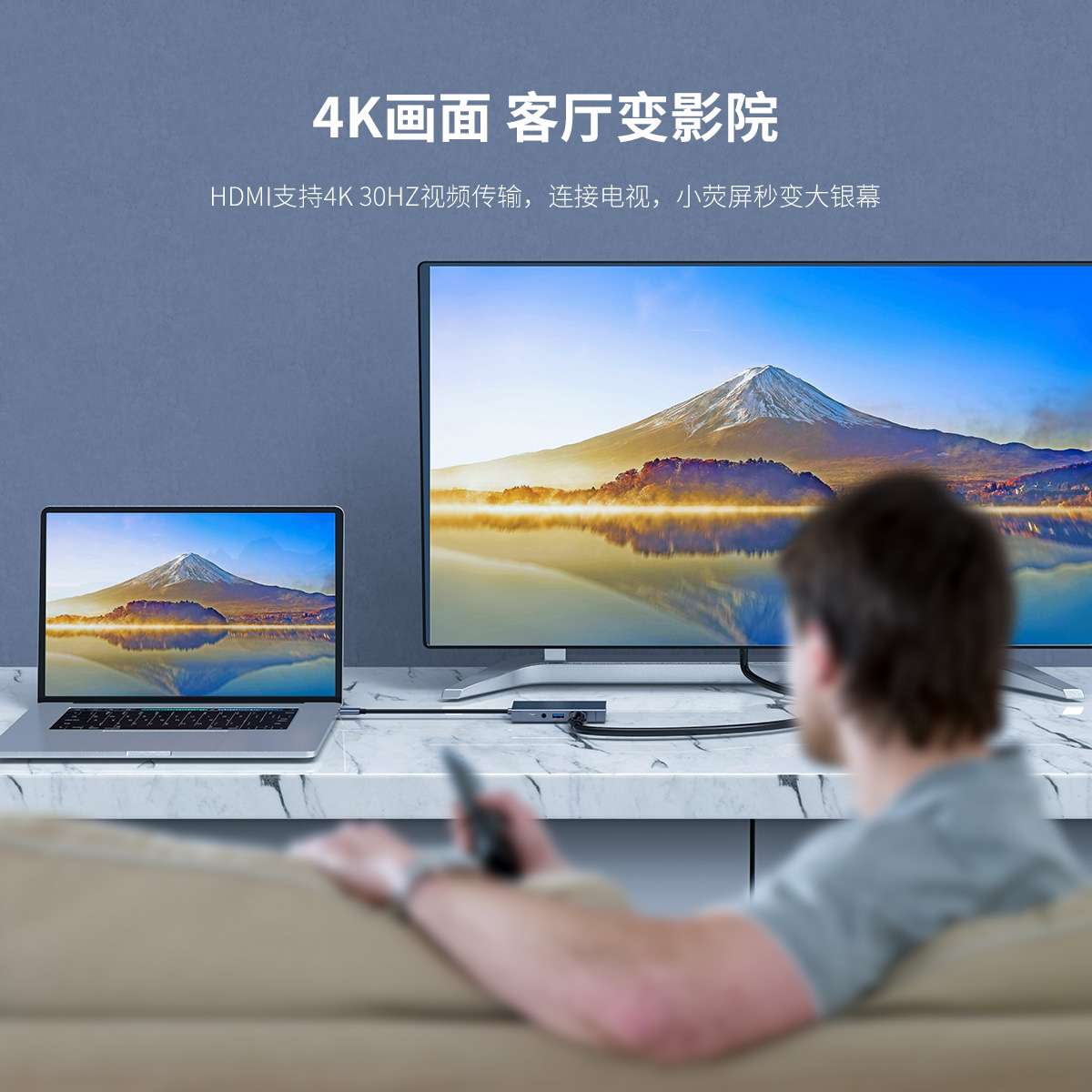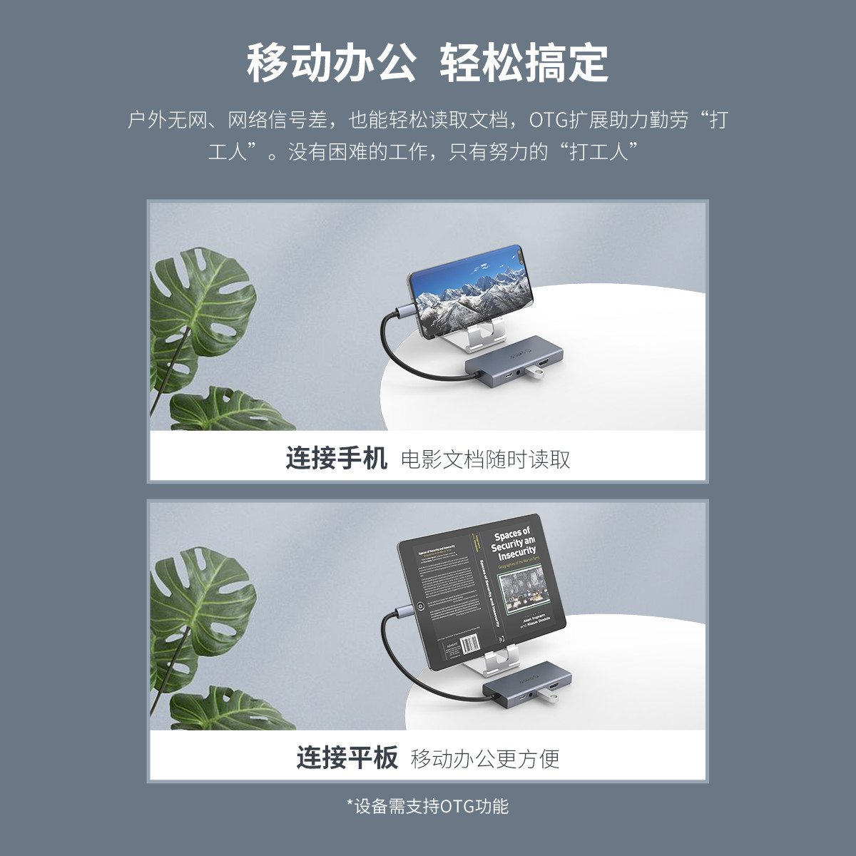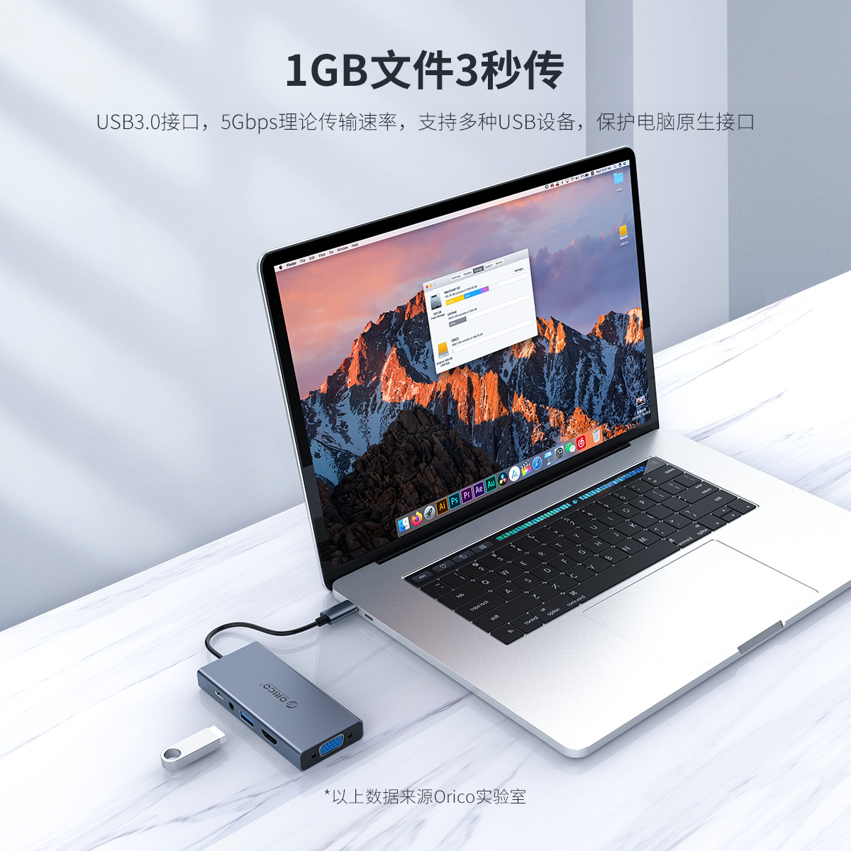 五口擴展,USB Type-C口支持PD2.0,HDMI支持4K 30HZ視頻傳輸,HDMI+VGA雙視頻接口,標準的DC3.5MM音頻接口,內(nèi)置數(shù)字音頻編解碼器