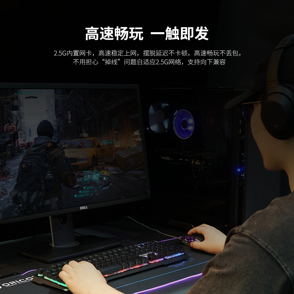 2.5G內(nèi)置網(wǎng)卡,高速穩(wěn)定上網(wǎng),擺脫延遲不卡頓,采用風(fēng)琴導(dǎo)熱片散熱設(shè)計(jì),快速散熱,需在Orico官網(wǎng)下載驅(qū)動(dòng)安裝