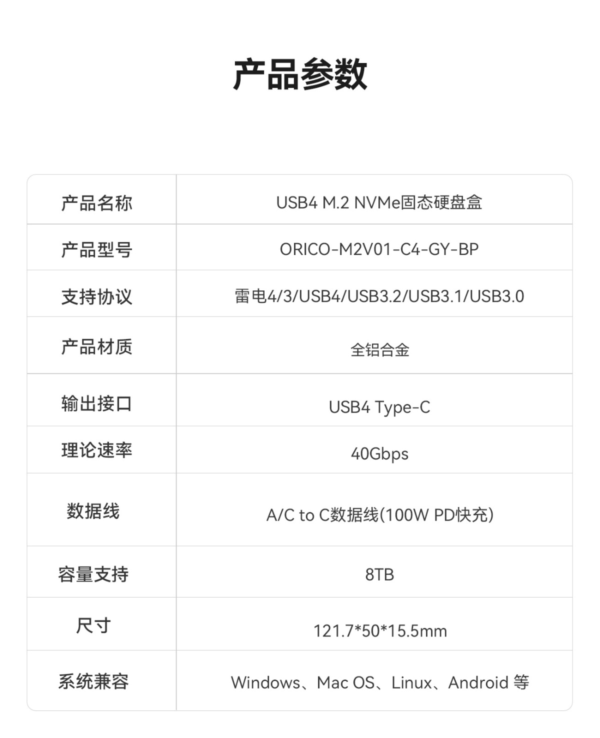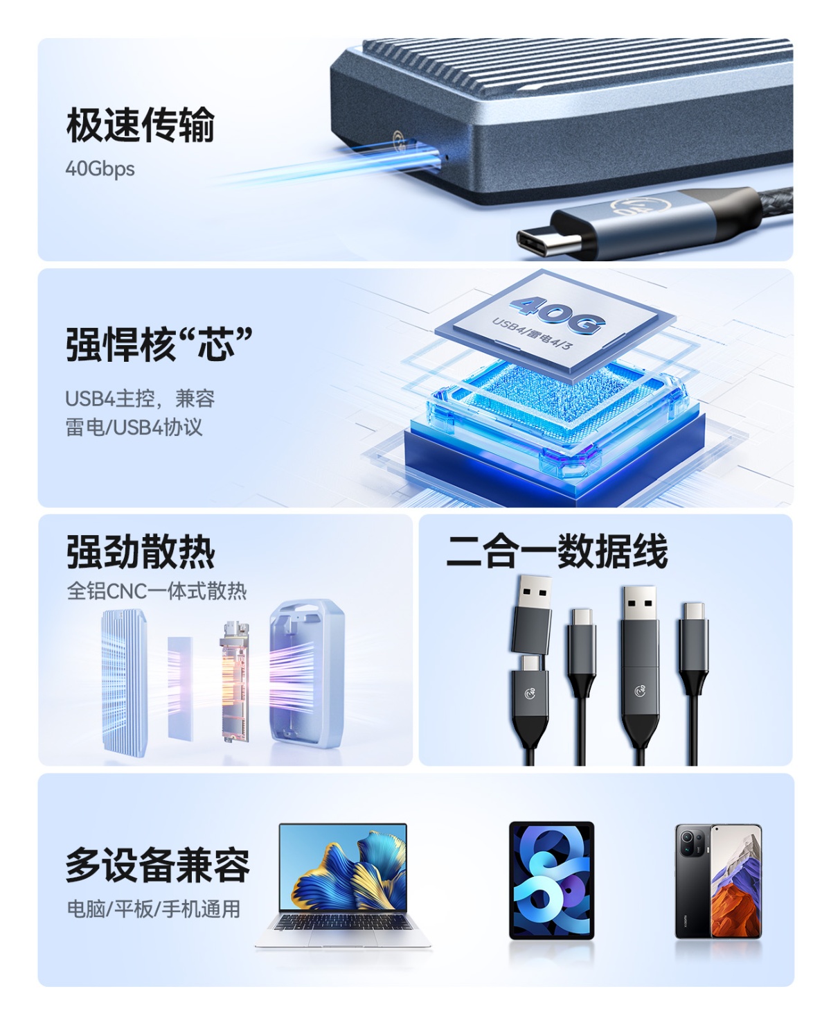 USB4.0,NVMe SSD硬盤盒,M.2硬盤盒,Type-c, 40Gbps傳輸