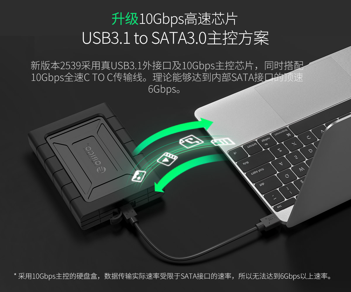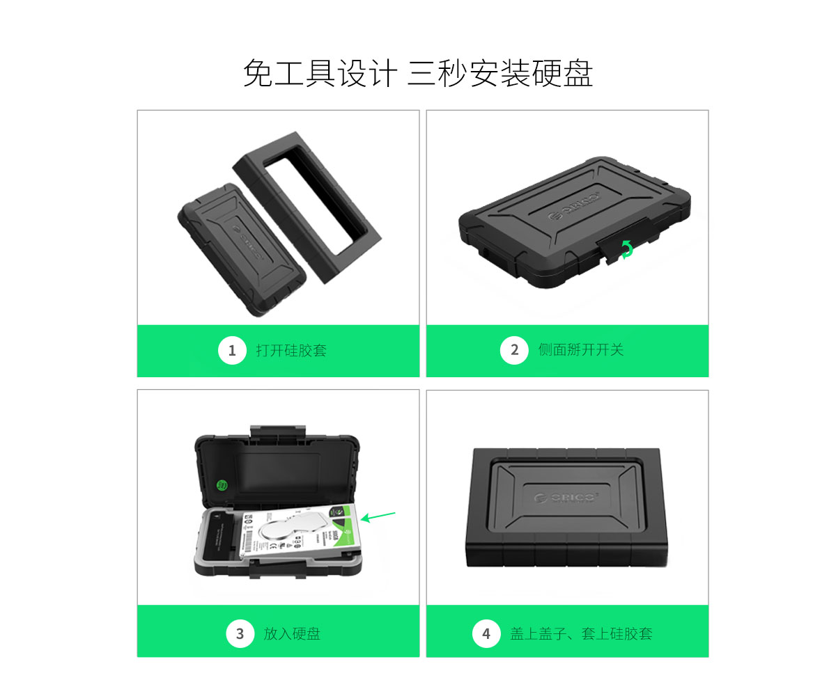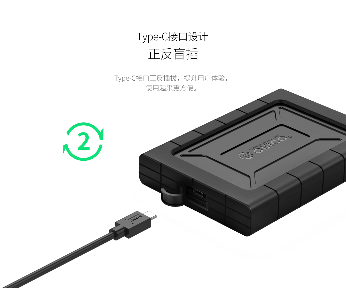 2.5英寸USB3.1 Type-C移動硬盤盒,360度硅膠防護