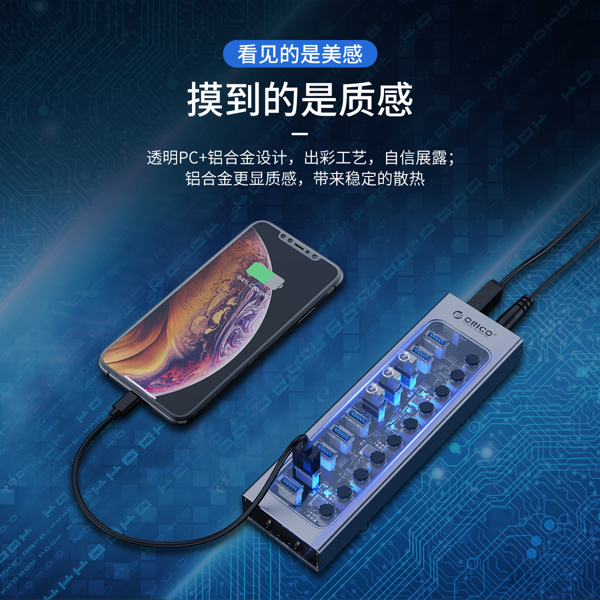 晶耀系列、透明鋁合金分控HUB