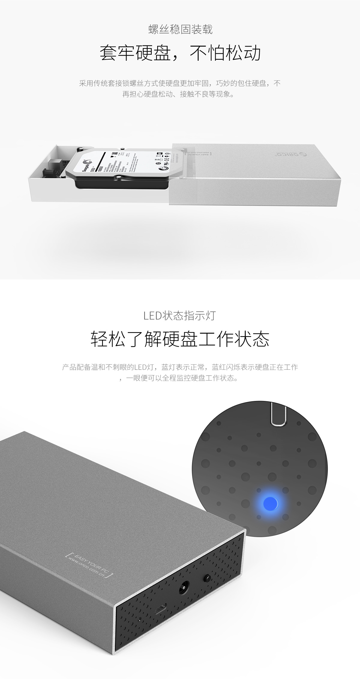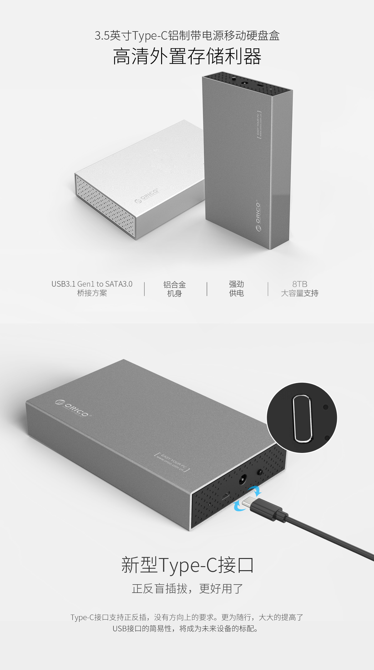 3.5英寸鋁合金Type-C硬盤盒,蜂窩散熱