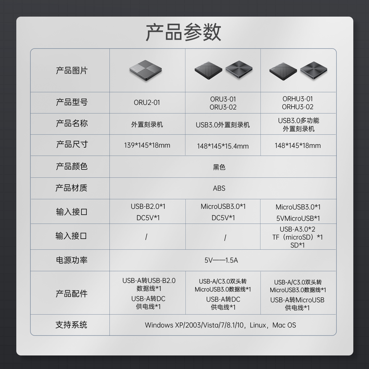 ORICO-ORU2-01/ORICO-ORU3-01/ORICO-ORU3-02/ORICO-ORHU3-01/ORICO-ORHU3-02