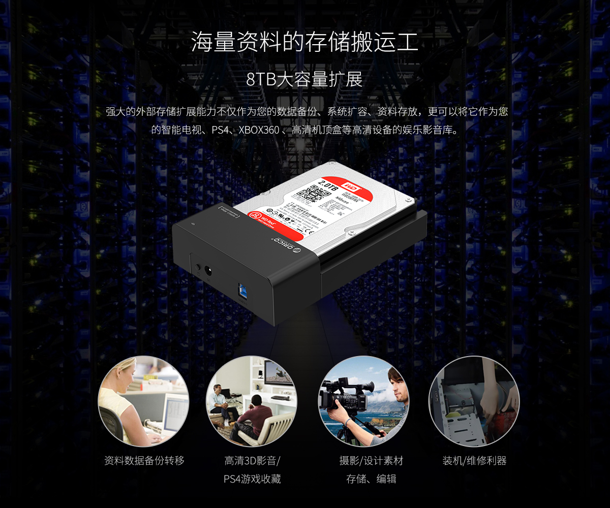 5Gbps理論速率,支持18TB大容量,機械固態硬盤通用,開放式散熱,24W獨立供電