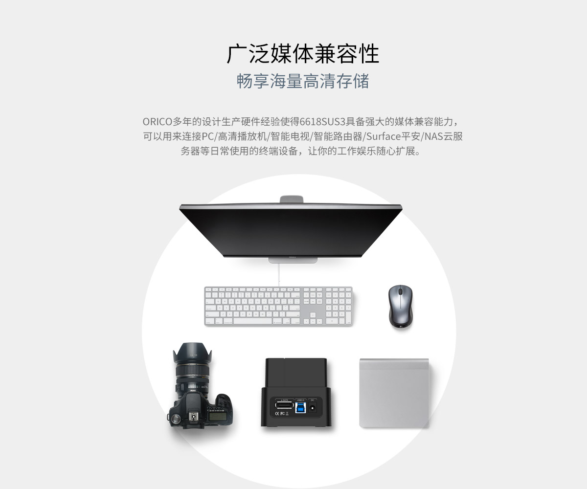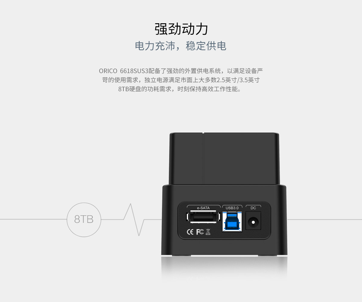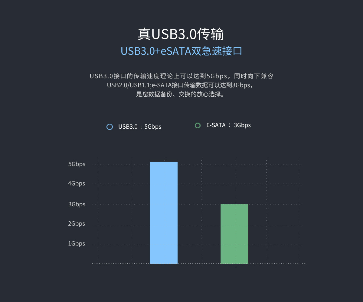 支持8TB容量,免工具安裝,USB3.0+eSATA雙接口,外置電源穩定供電