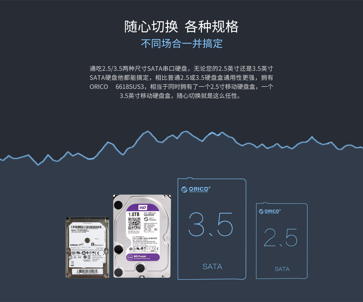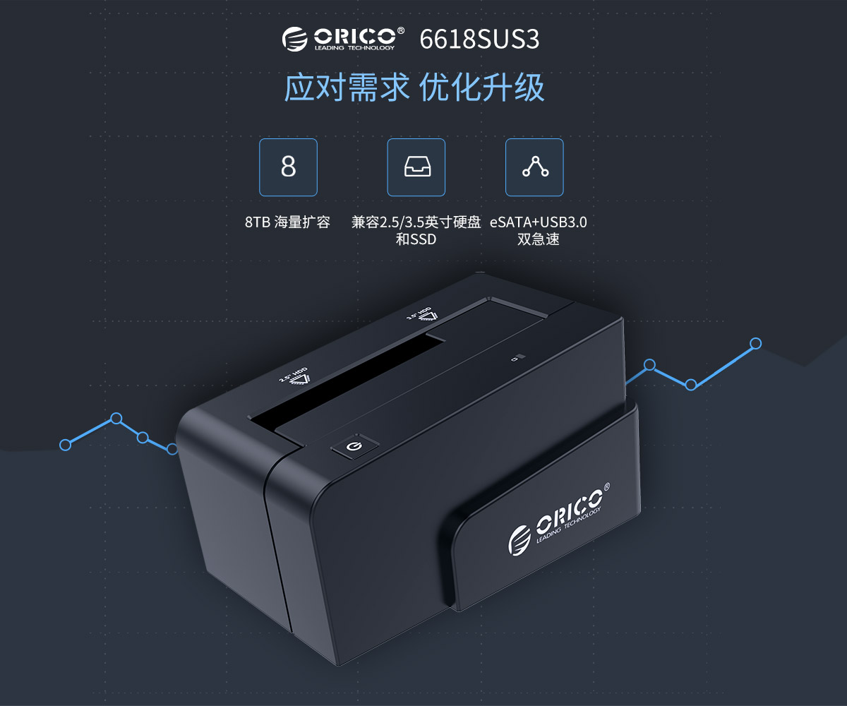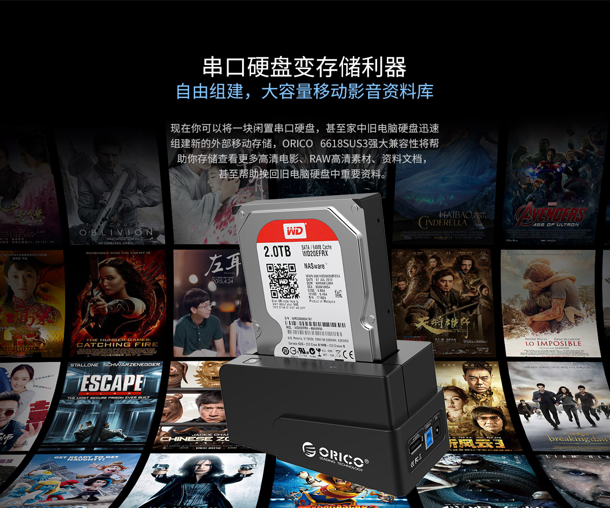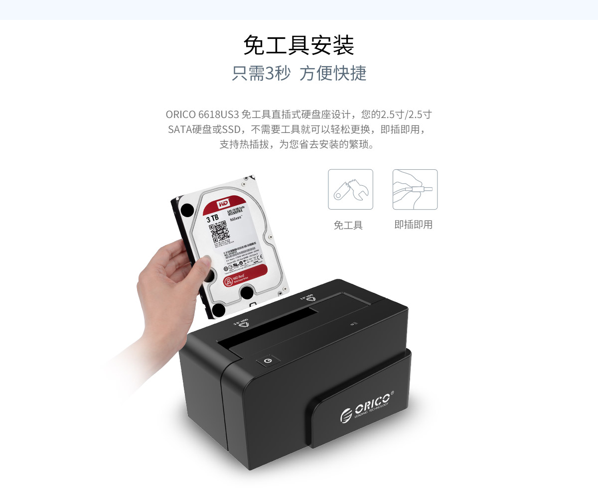 支持8TB容量,免工具安裝,USB3.0+eSATA雙接口,外置電源穩定供電