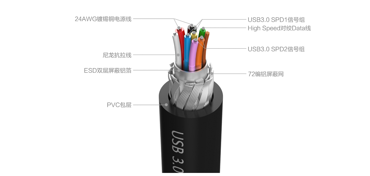 業(yè)內(nèi)USB3.0線材供應(yīng)商,選用帶屏蔽的無氧銅芯線,傳輸供電性能、運行速度和穩(wěn)定性都大幅提升。