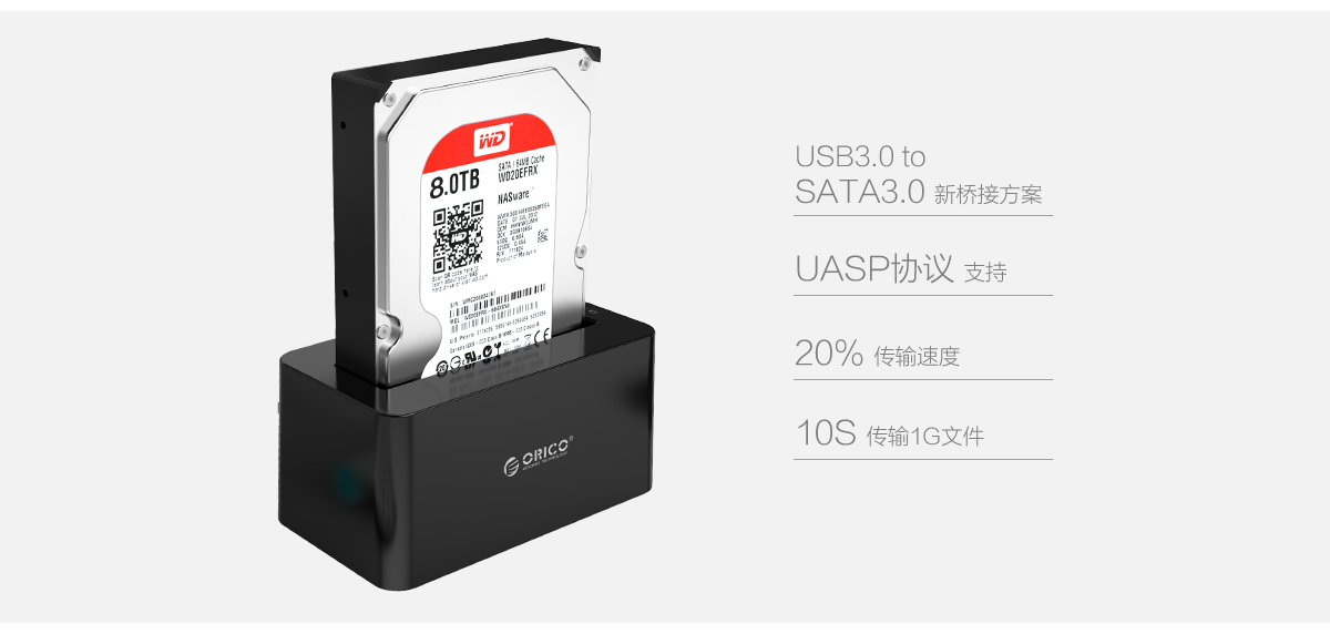 ORICO 6619C3累積多年存儲設(shè)計經(jīng)驗,在PCB電路設(shè)計與SATA硬盤擁有良好的兼容性能,支持8TB海量存儲,無憂存無慮取,告別小容量不夠用的煩惱。