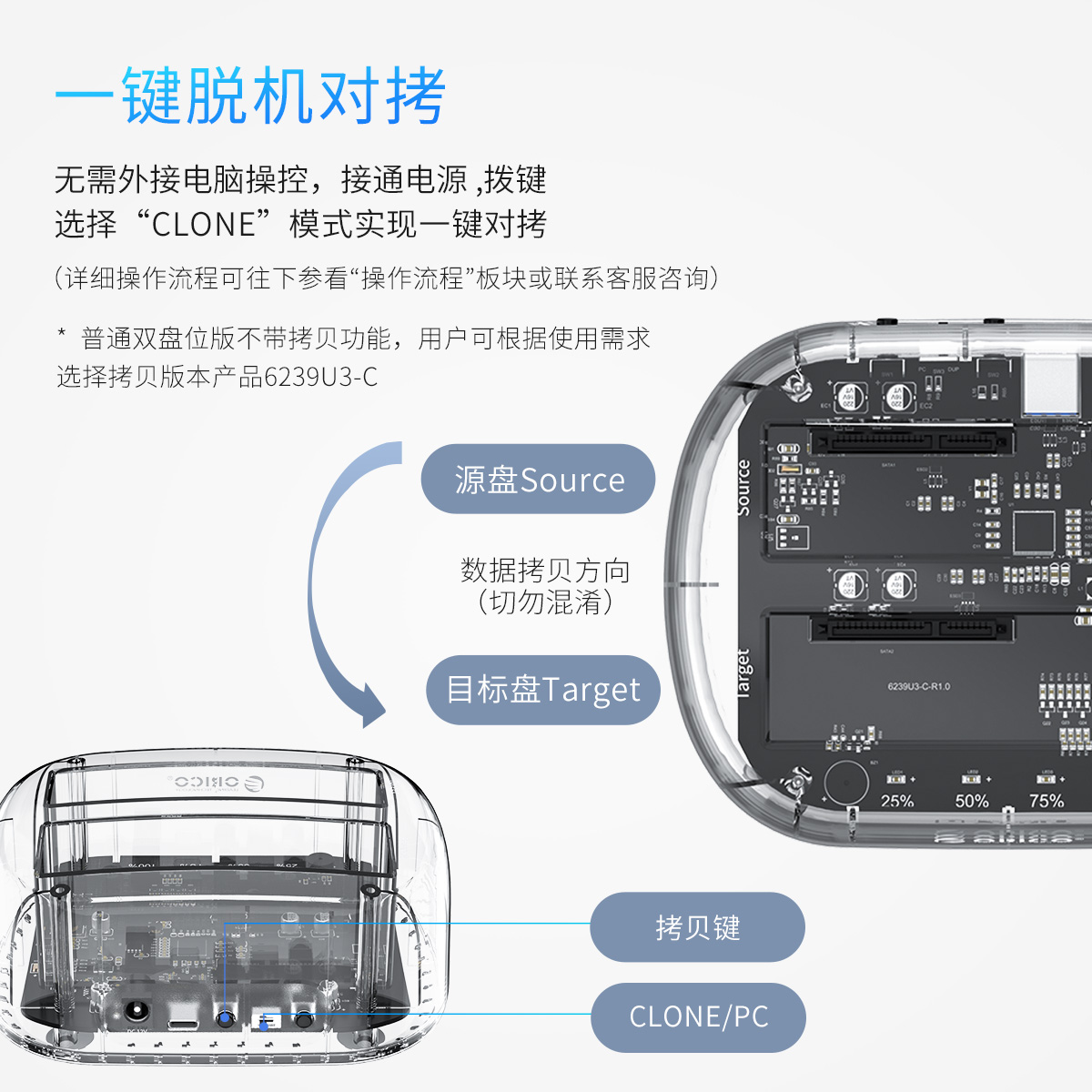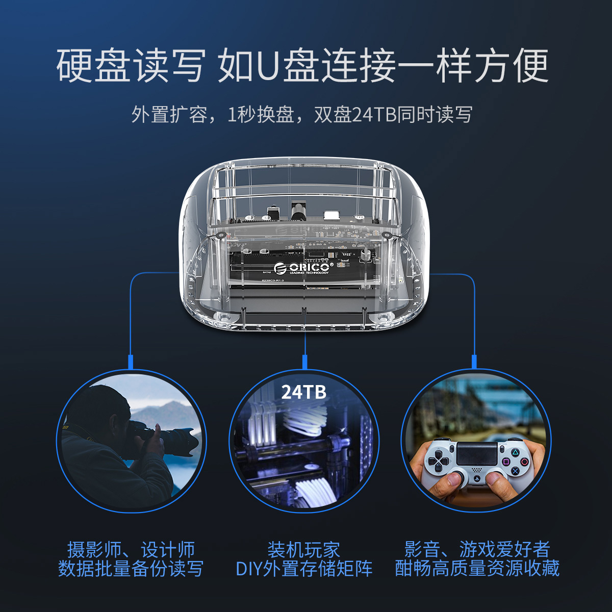 透明系列3.5英寸雙盤位Type-C硬盤底座