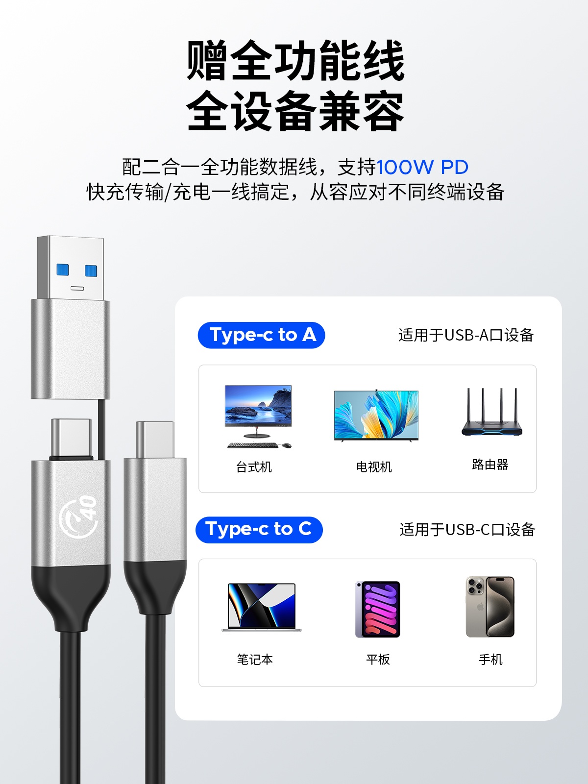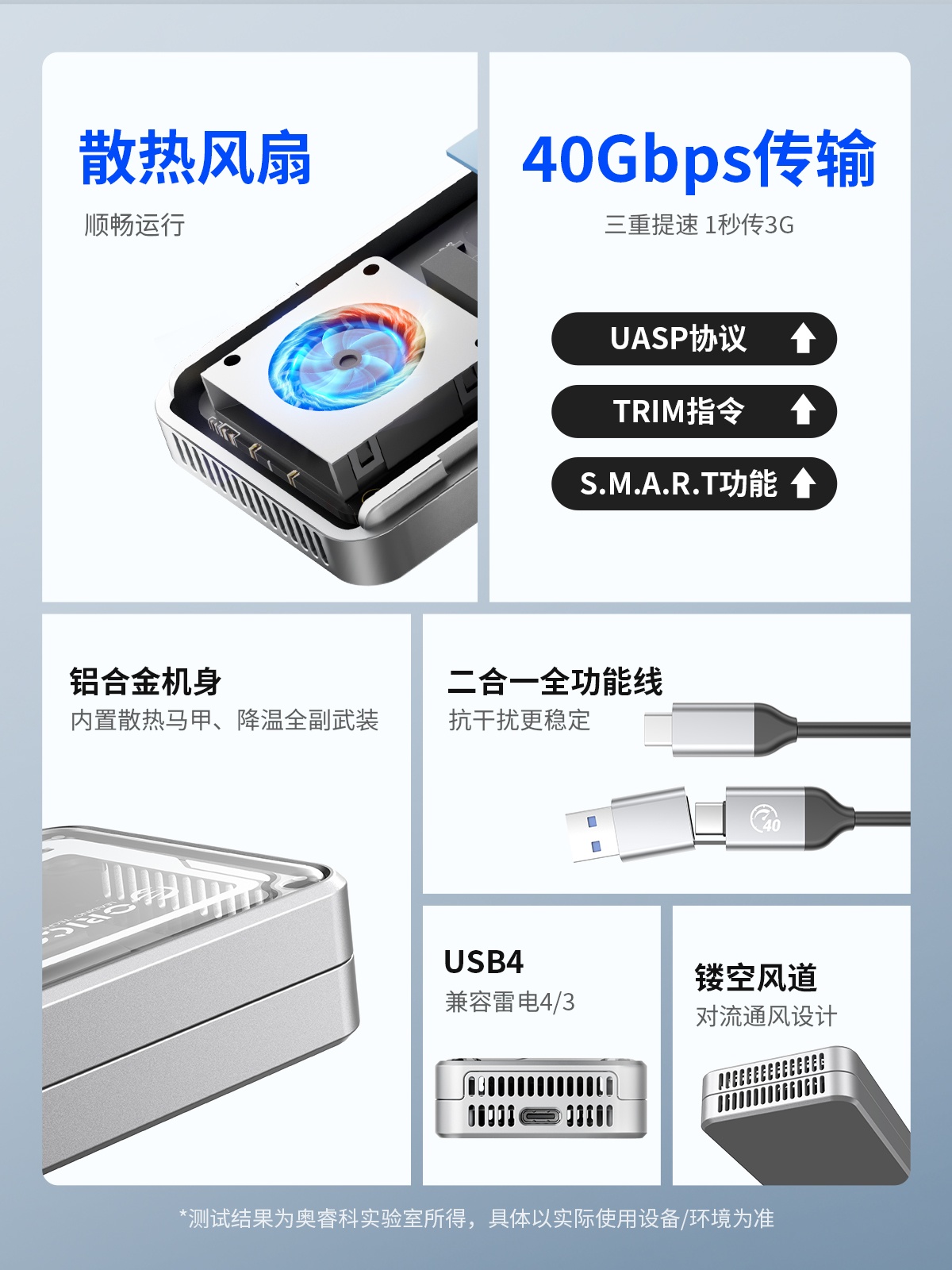 USB4透明鋁晶40Gbps M.2硬盤盒