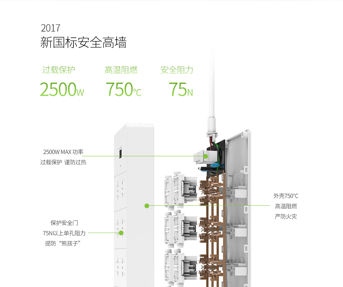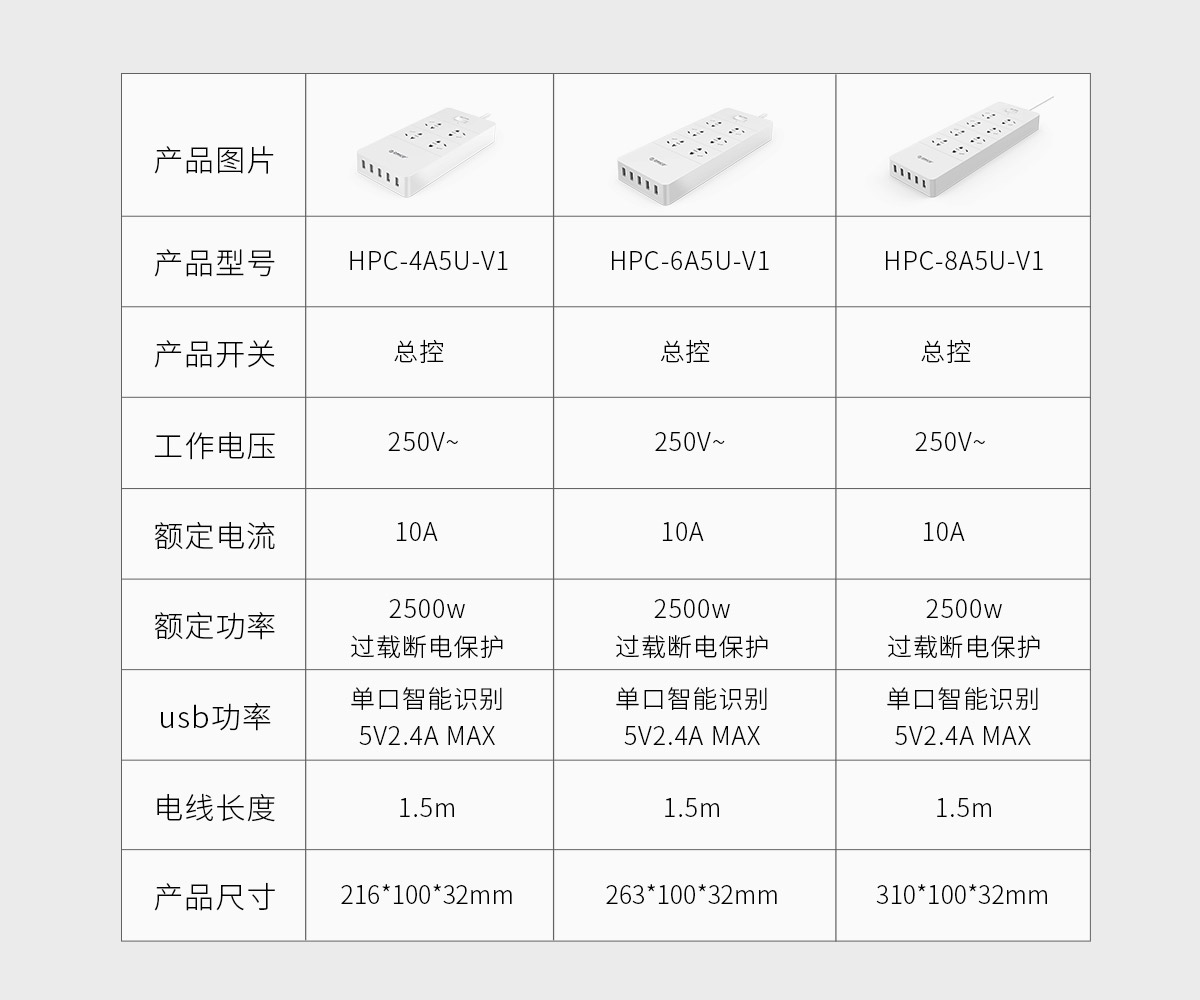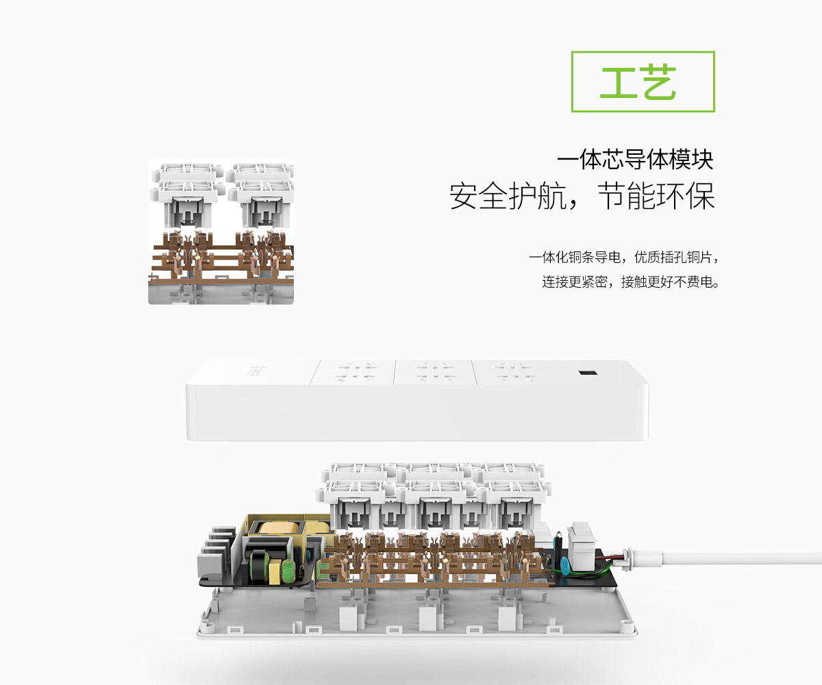 新國標商企辦公總控6AC口5USB口智能排插
