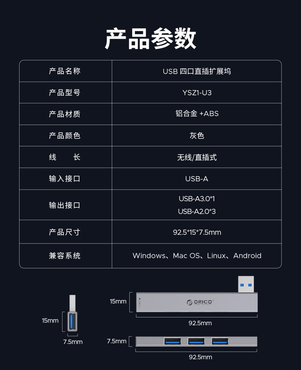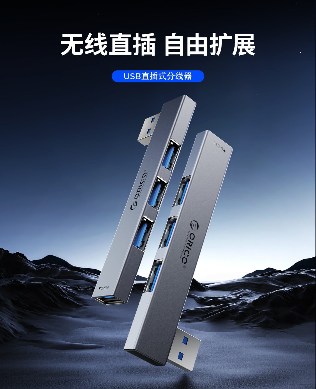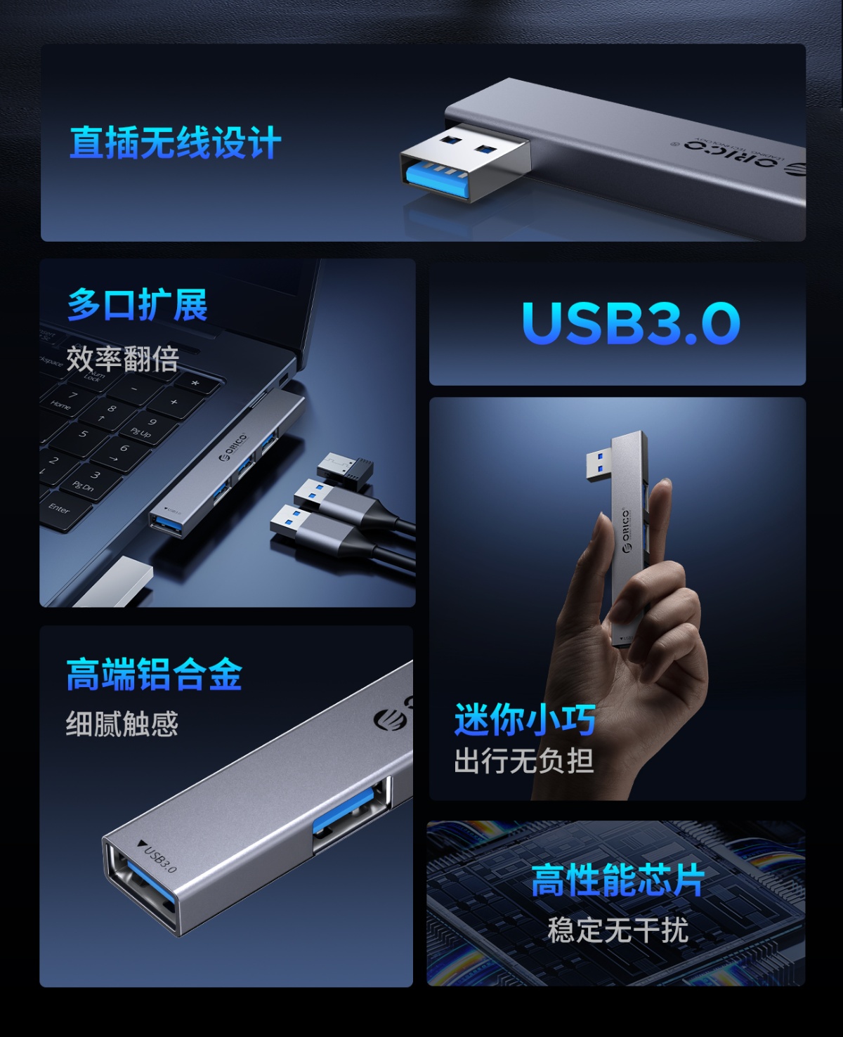 直插式鋁合金迷你USB3.0HUB