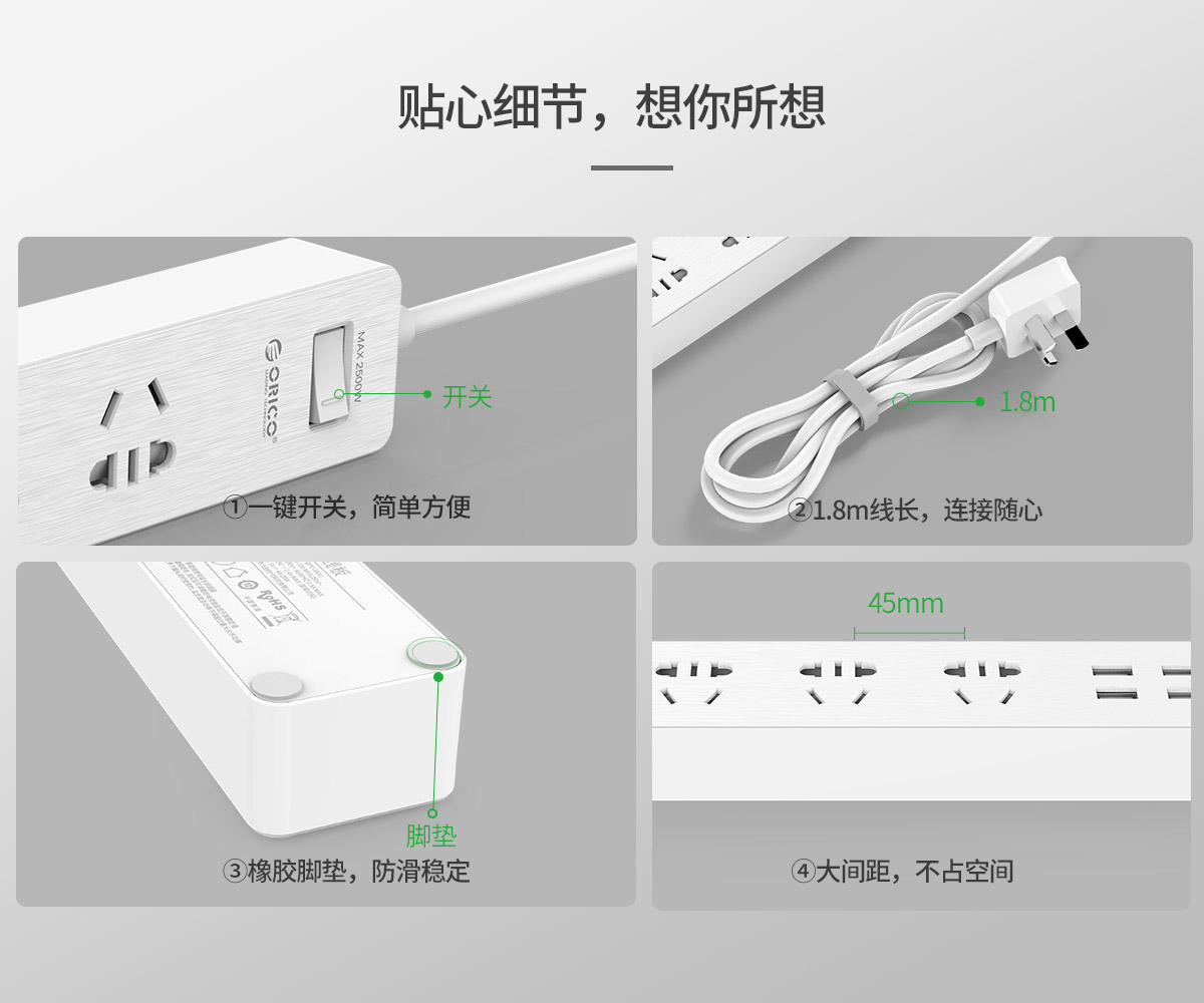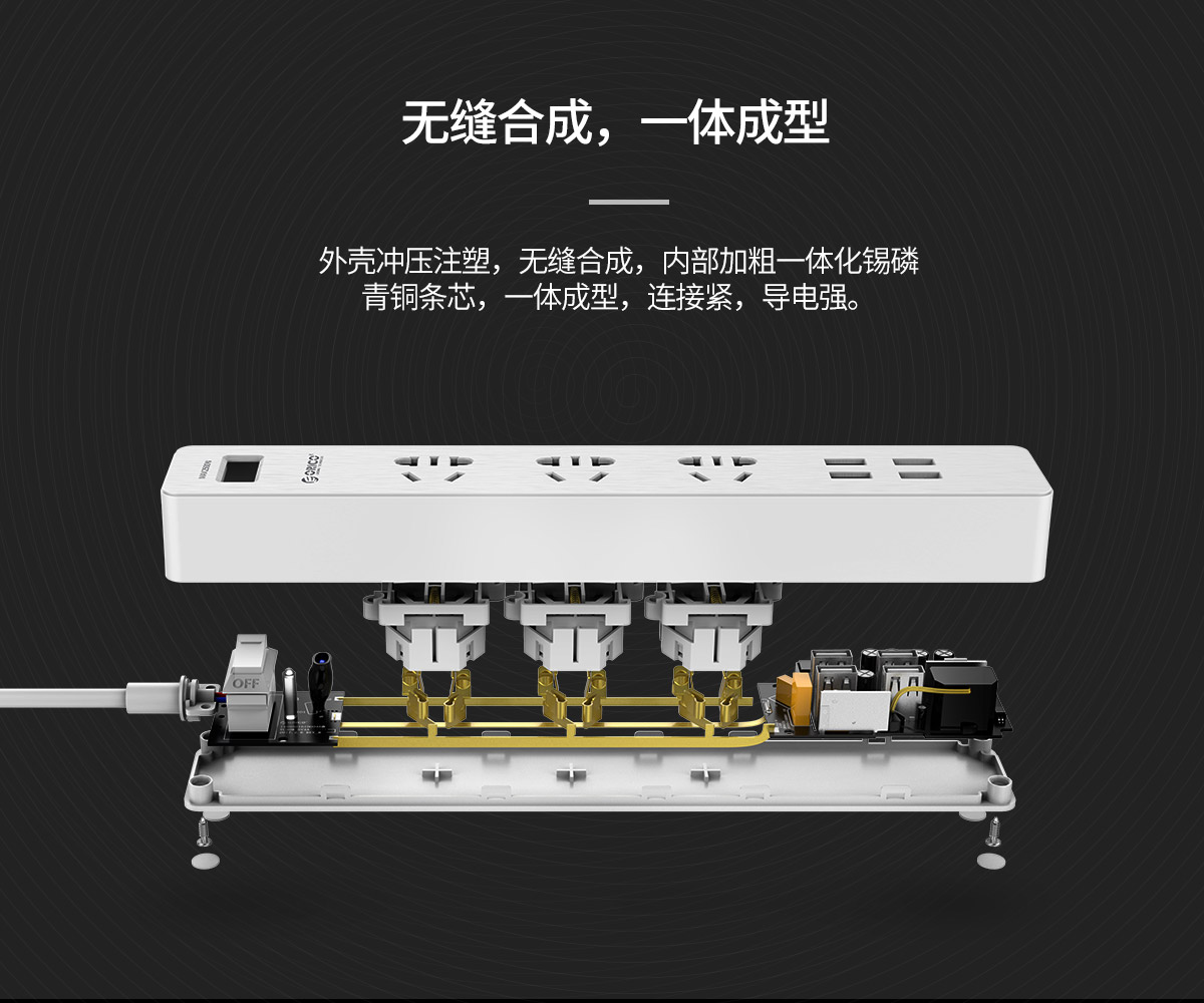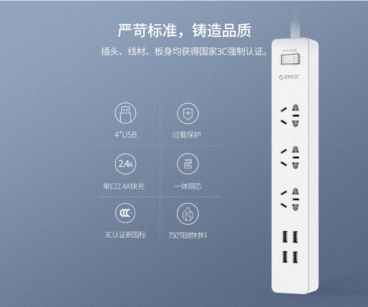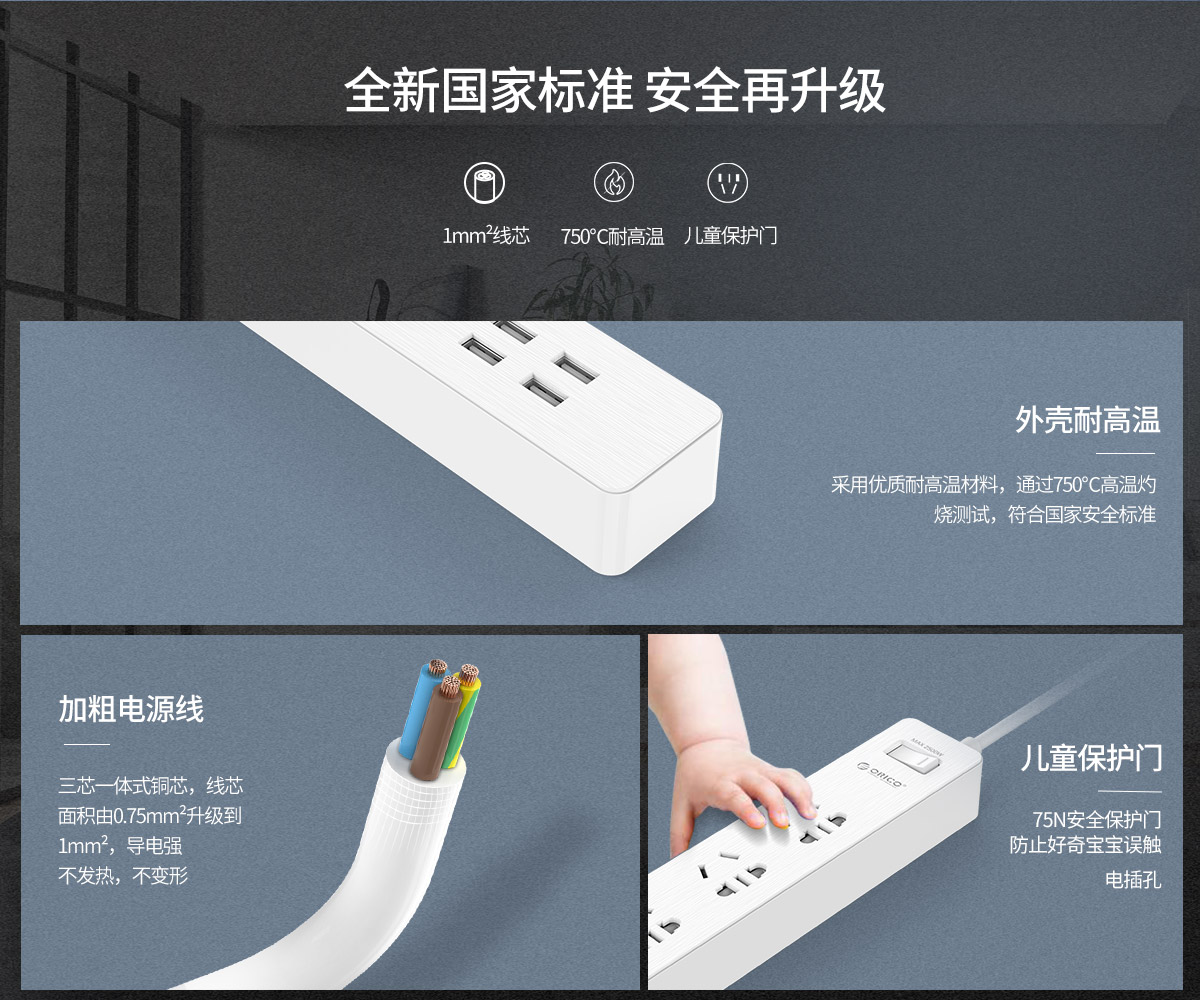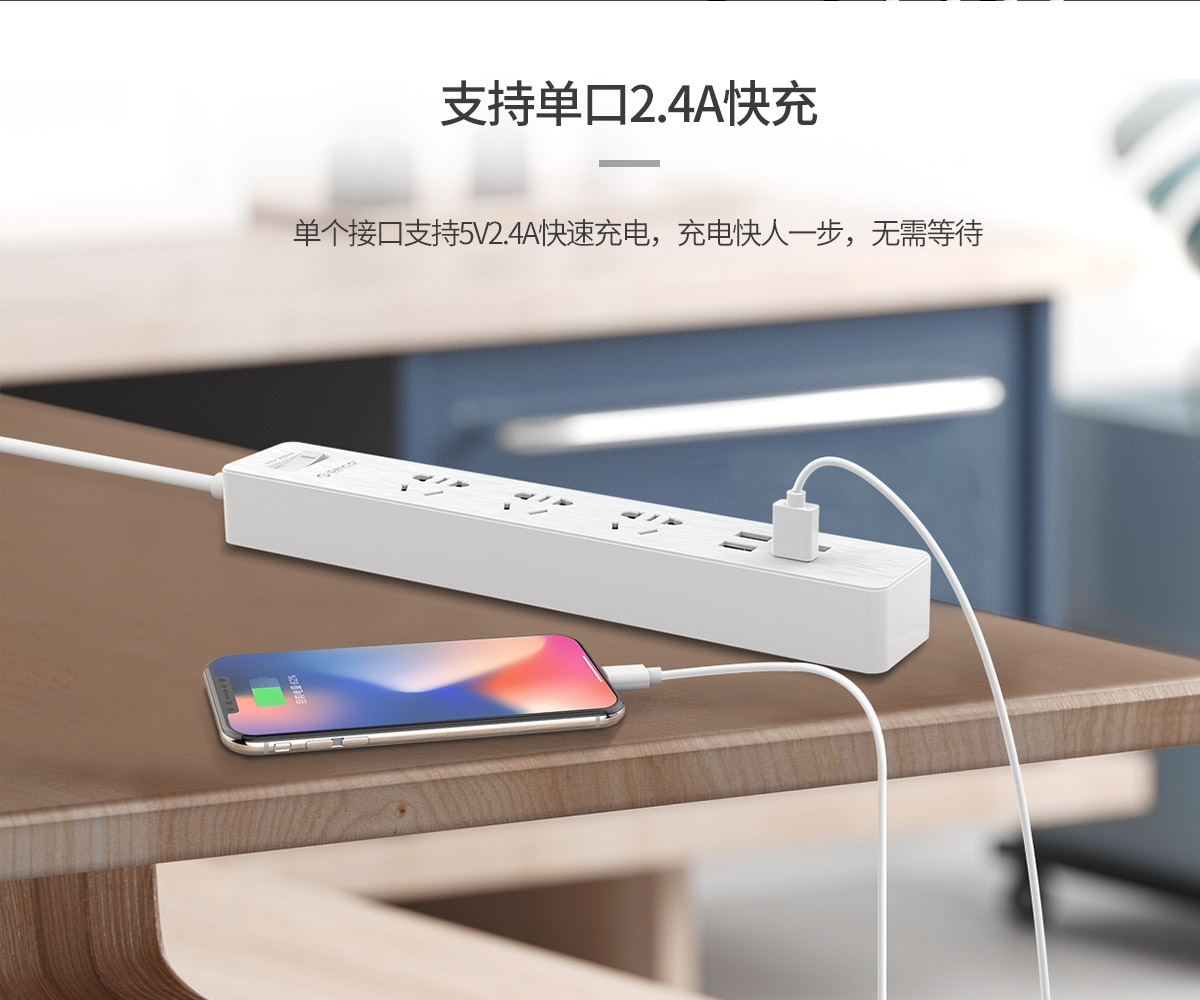 木紋外觀,新國標便攜桌面式排插,辦公智能排插,高溫環保材料,底座硅膠防滑