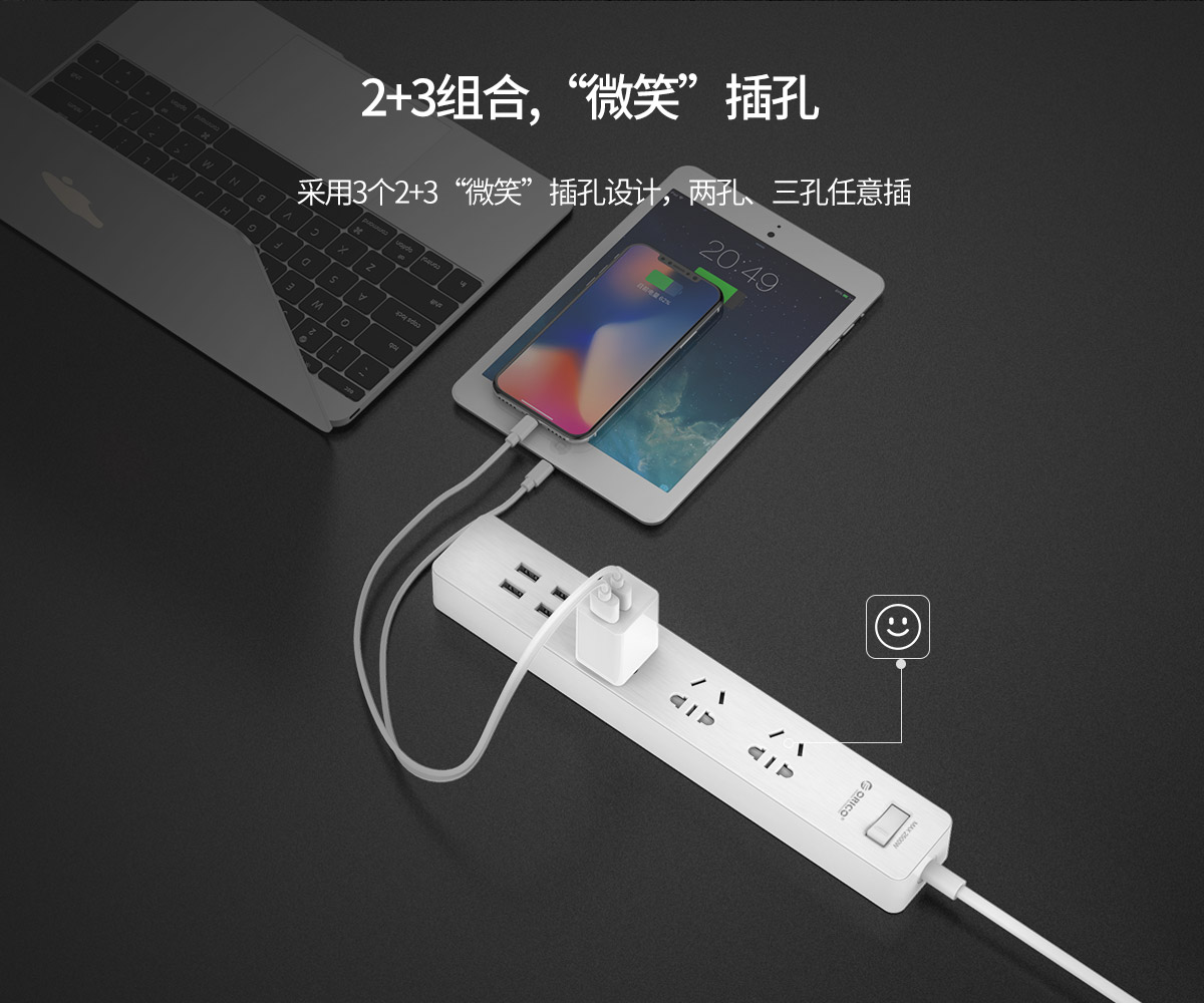 木紋新國標3AC口4usb口智能桌面USB插線板