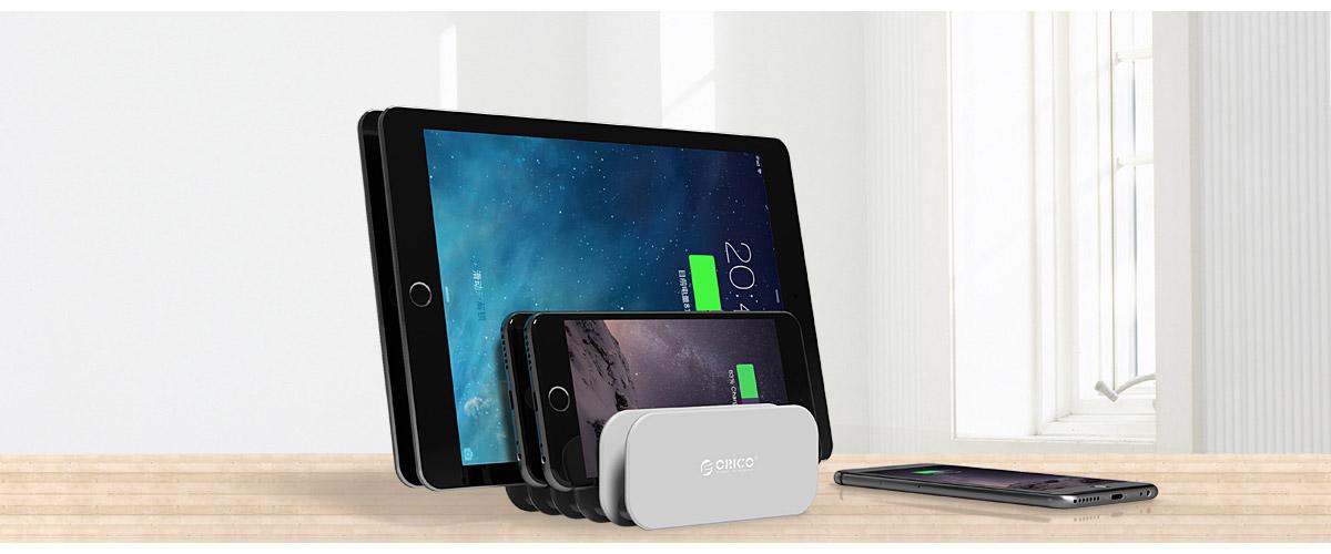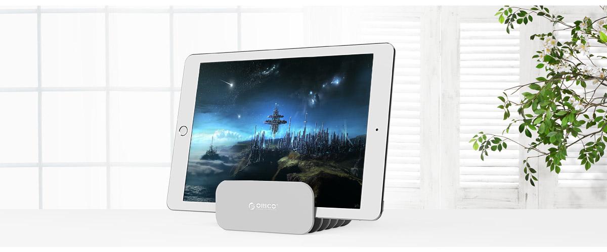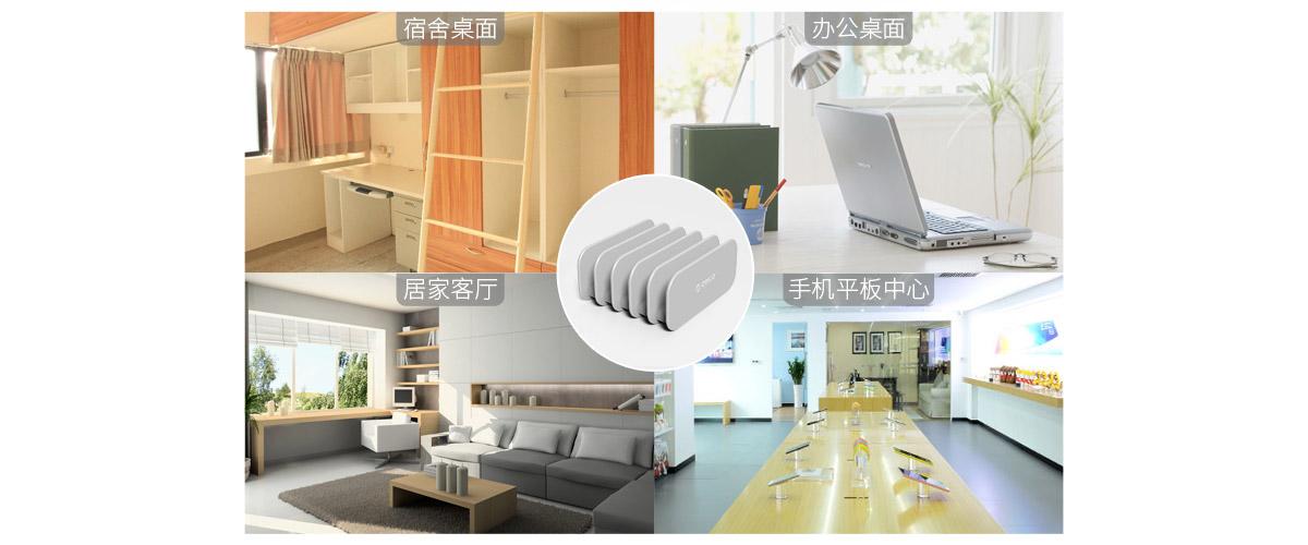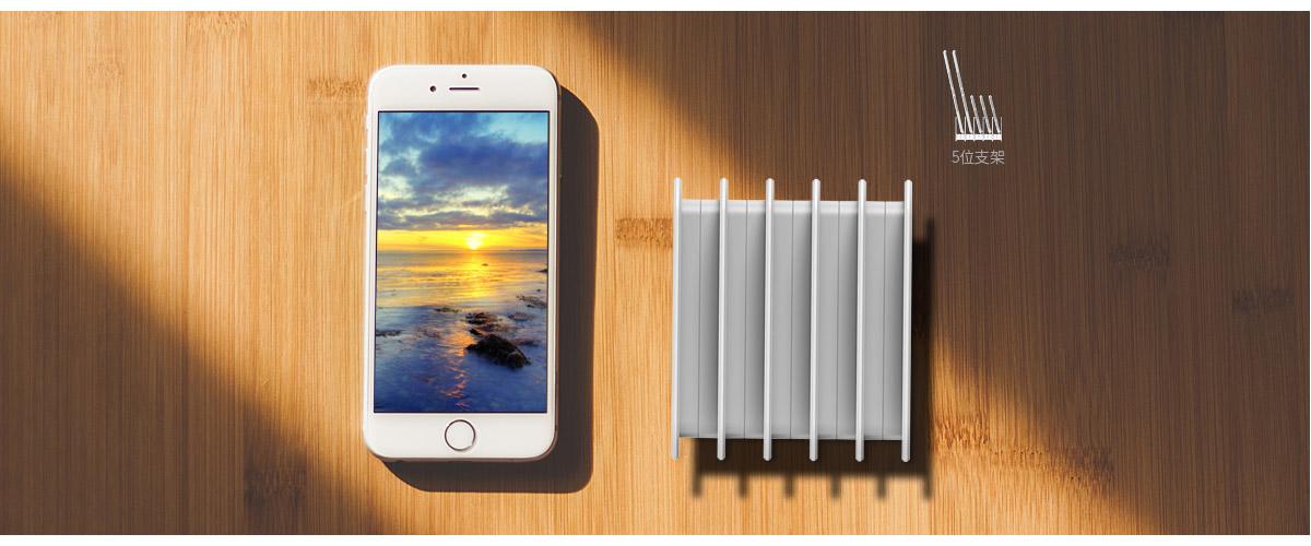 每一個數(shù)碼設(shè)備均可放置在支架上充電,無需占據(jù)過多的桌面面積,簡單方便。任何手機、平板均可輕松放置,讓你的桌面變得整潔簡單