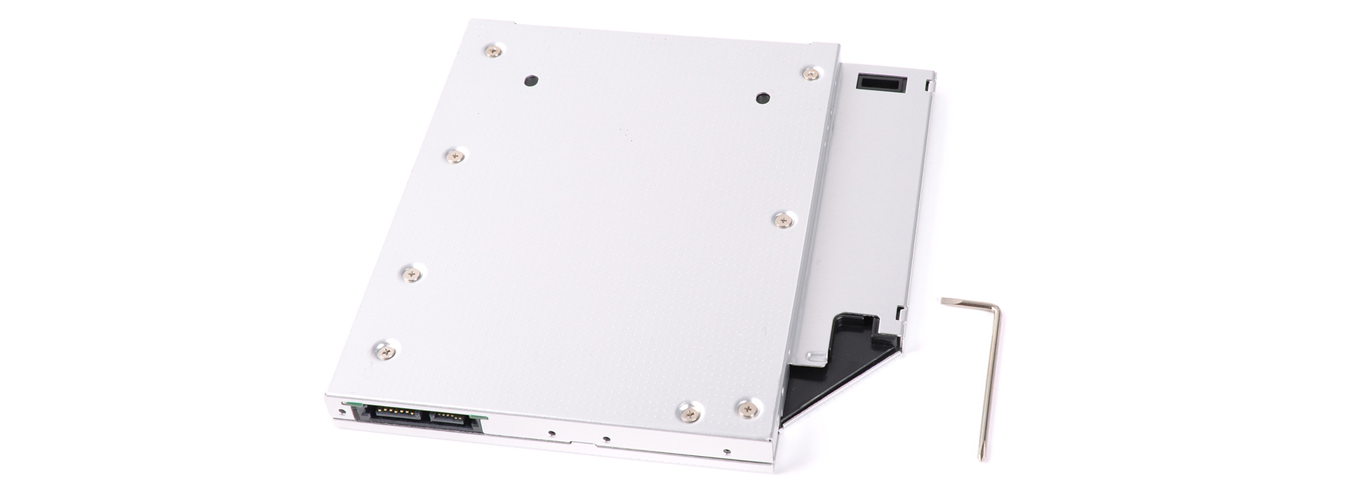 由于筆記本硬盤的特殊性和更高的制作工藝,高速與容量一直不能并肩而行,為此我們?yōu)楣P記本電腦研發(fā)了這款選件——第二塊硬盤適配器(俗稱光驅(qū)位硬盤盒或是光驅(qū)位硬盤托架),內(nèi)置于帶光驅(qū)的大部分機(jī)型中,實(shí)現(xiàn)2塊硬盤同時(shí)使用,高容量與高速兼得;在SSD越來越普及的時(shí)代,光驅(qū)位硬盤架為您帶來了既有高速運(yùn)行的系統(tǒng),又能大容量存儲的解決方案。