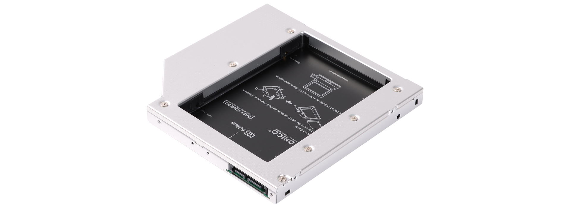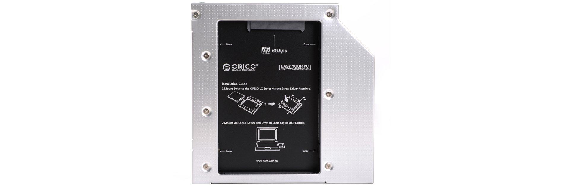 ORICO L127SS筆記本光驅(qū)位硬盤托架采用鎂鋁合金外殼內(nèi)置塑料框架的設(shè)計(jì),金屬外殼表面有點(diǎn)陣紋理并采用多枚螺絲固定,背面是表面有點(diǎn)陣紋理并采用多枚螺絲固定的鎂鋁合金外殼。托架中間位置可安裝一個(gè)2.5英寸SATA硬盤固態(tài)硬盤,通過替換筆記本內(nèi)置的光驅(qū)從而增加存儲容量和讀寫性能。