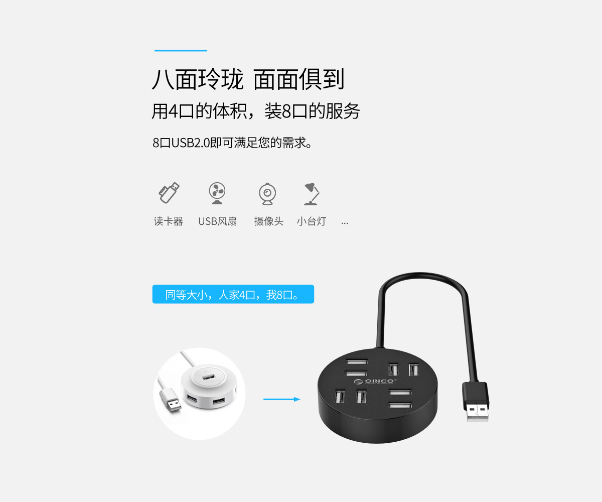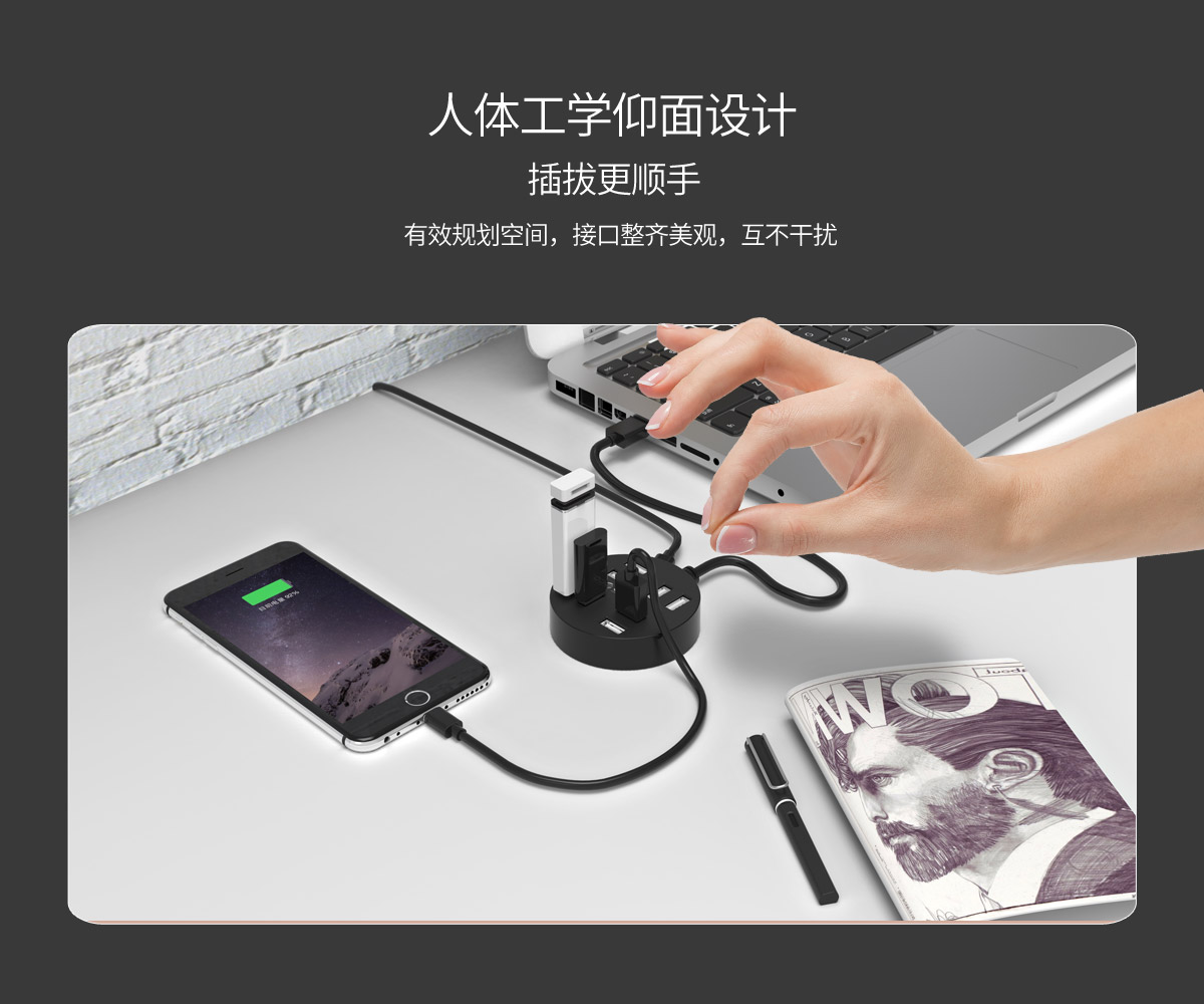 小巧便捷 一體設(shè)計 多線長可選 多口集線器 仰面設(shè)計
