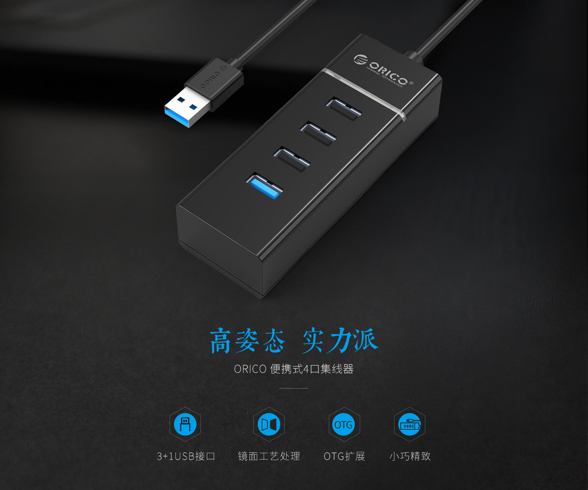 連體設計 30cm數據線長 內透LED指示燈 3+1USB接口擴展