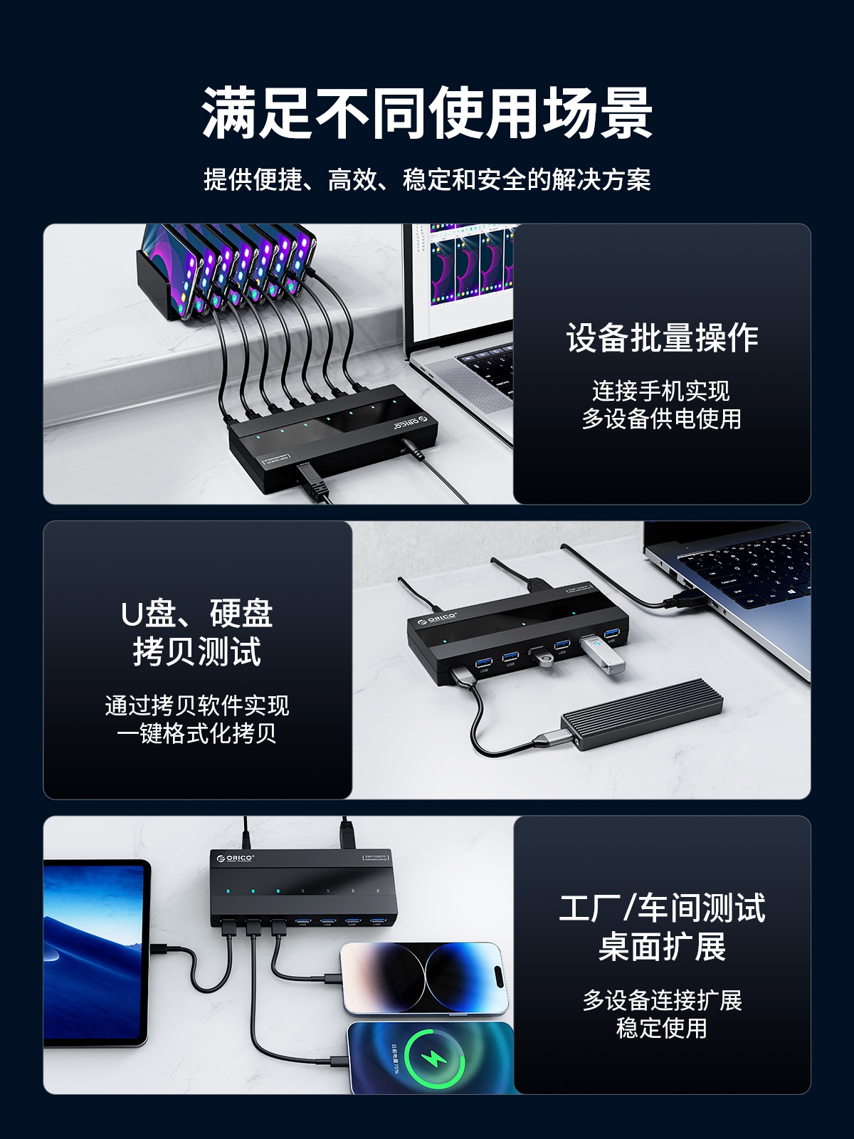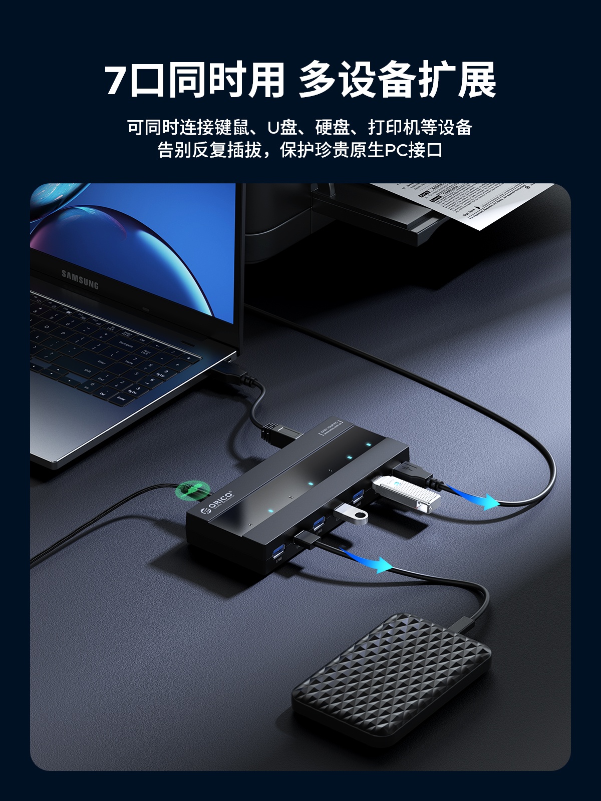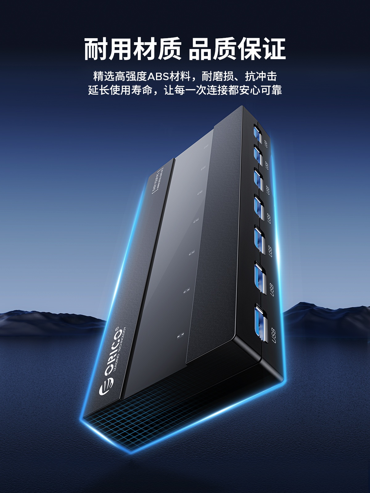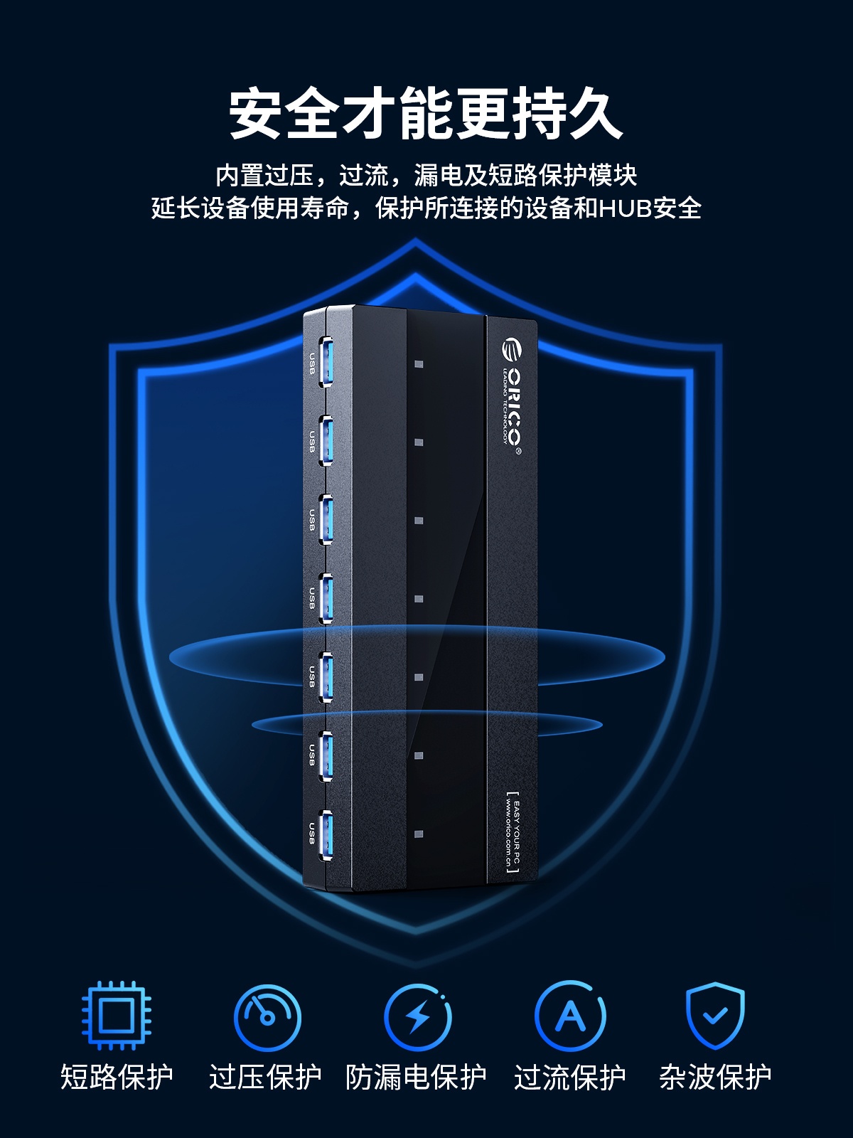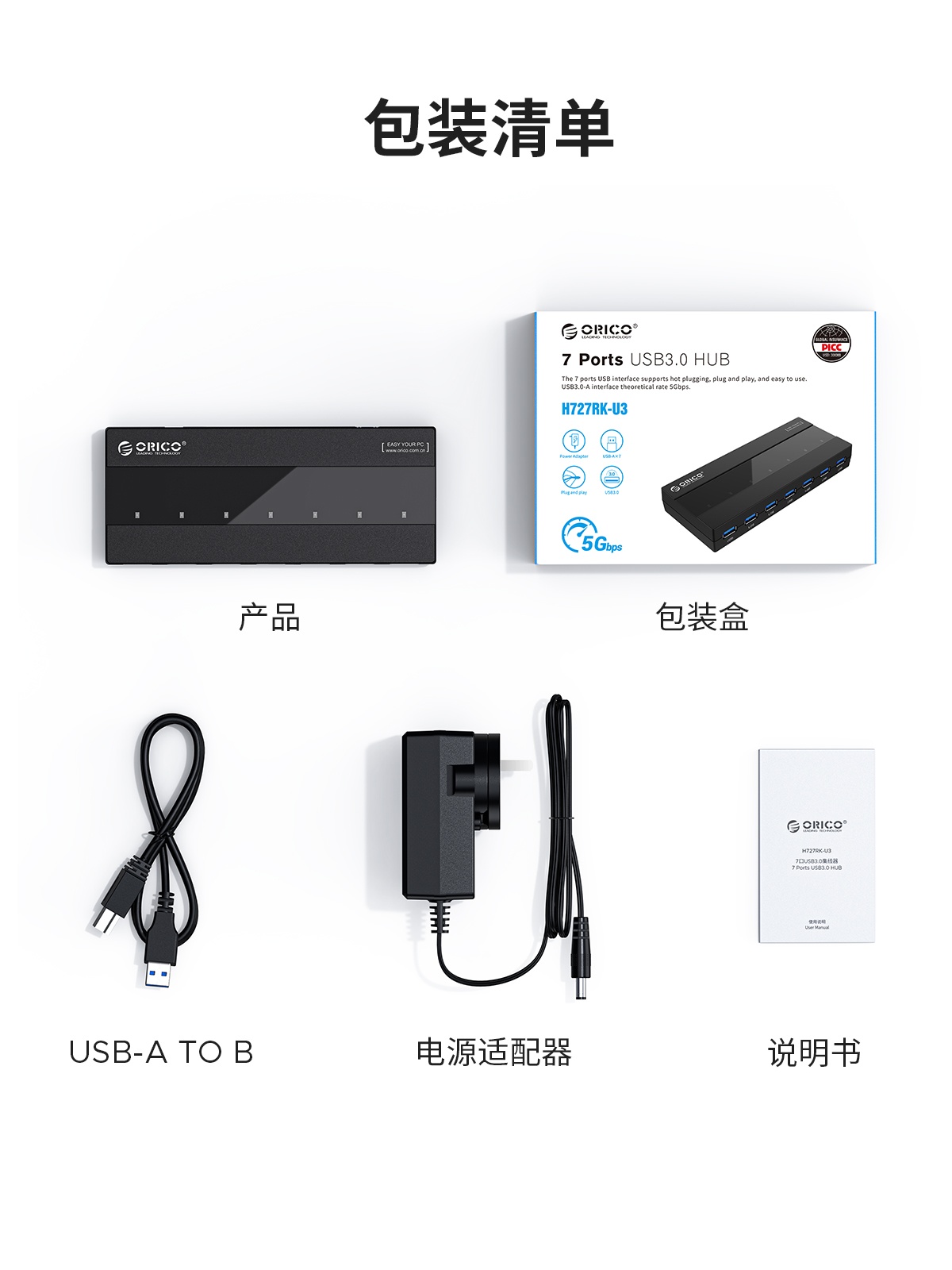 7口USB3.0桌面集線器,60W獨(dú)立供電