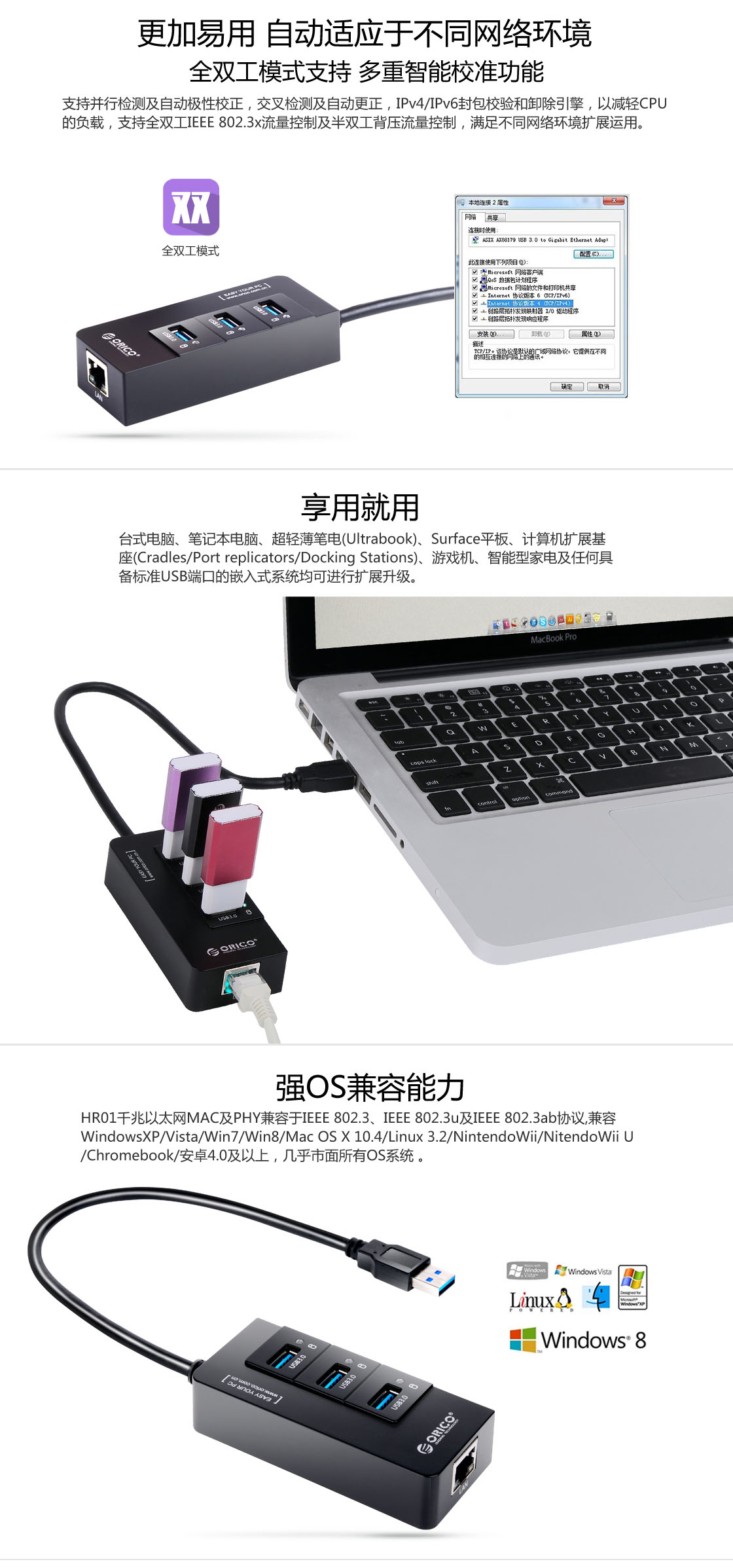 USB3.0千兆網(wǎng)絡(luò)集線器,USB供電