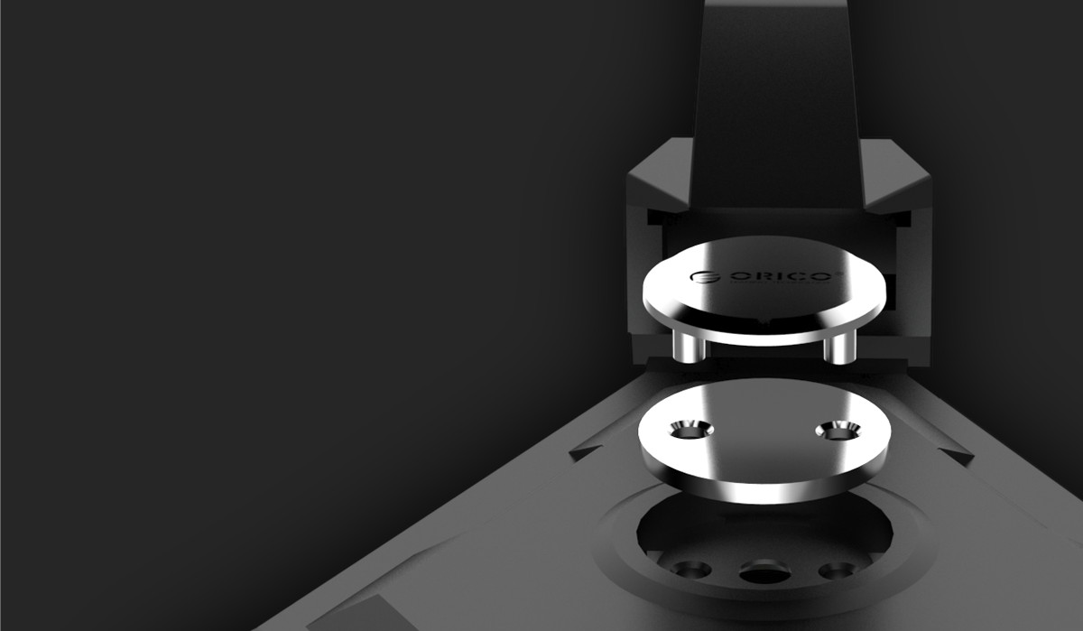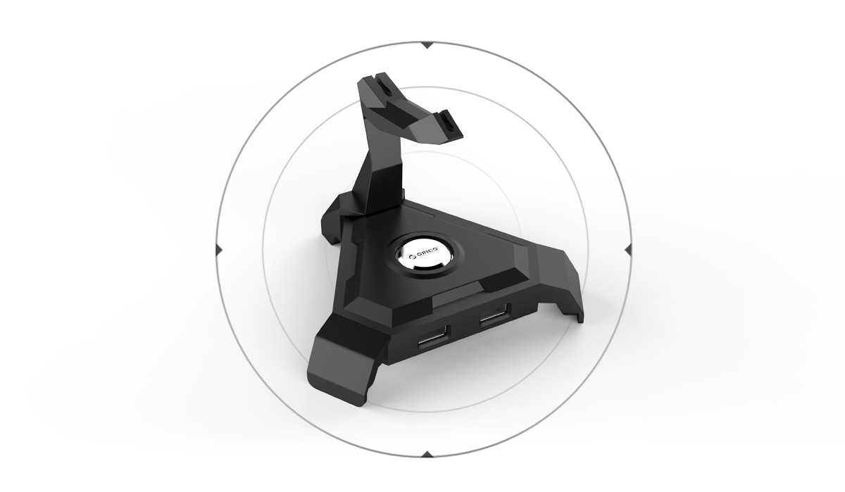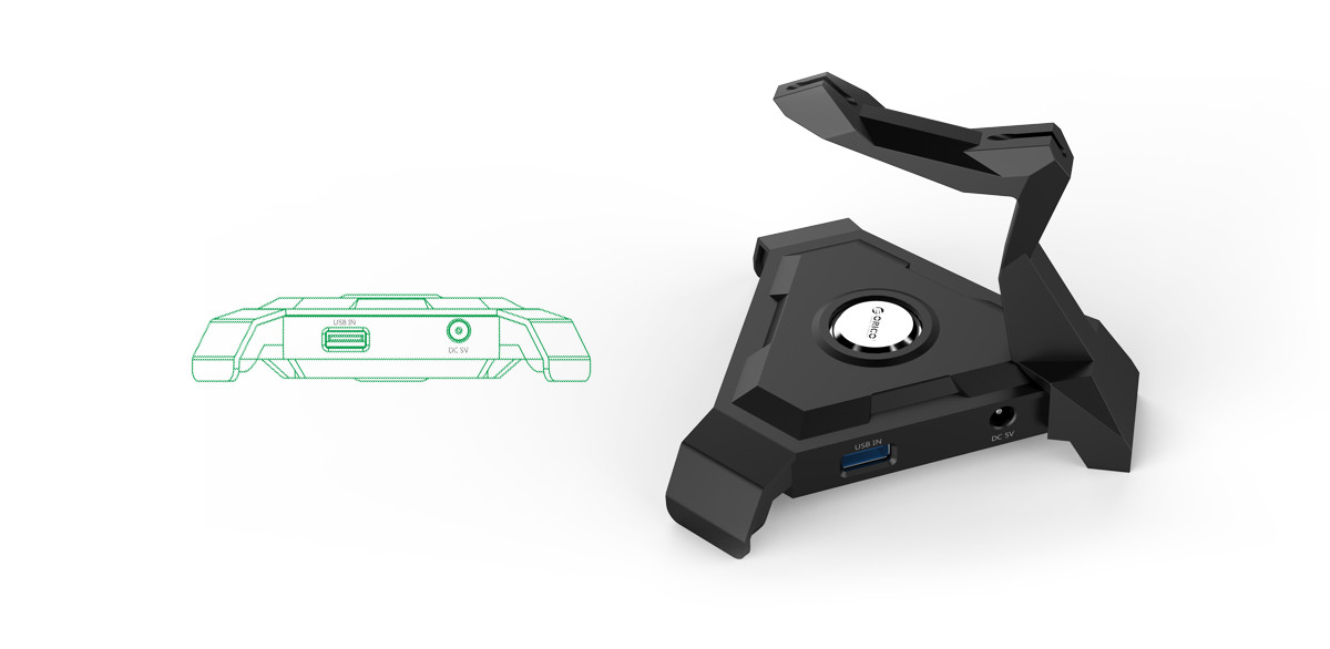 “天蝎”造型,而黑色的搭配更顯得這款固線器炫酷時尚,中間圓形ORCIO LOGO即是電源指示燈也是科技的點綴,微弱的藍色燈光,與游戲玩家或工作狂熱者的溫馨陪伴。