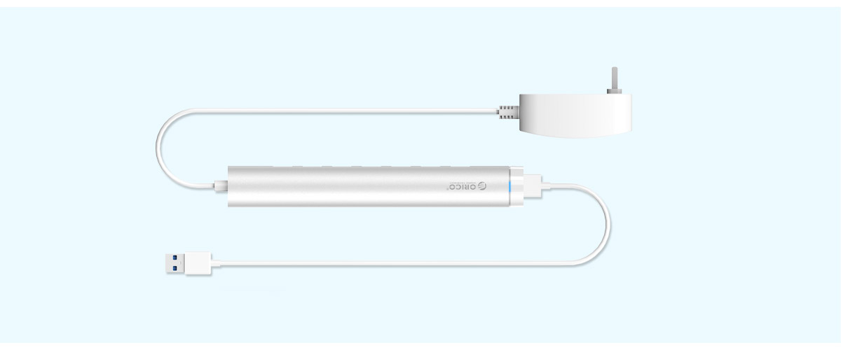 產品搭配5V2A電源適配器,用強勁的功能能力,為產品七口滿載或搭載大功率USB設備時保駕護航。