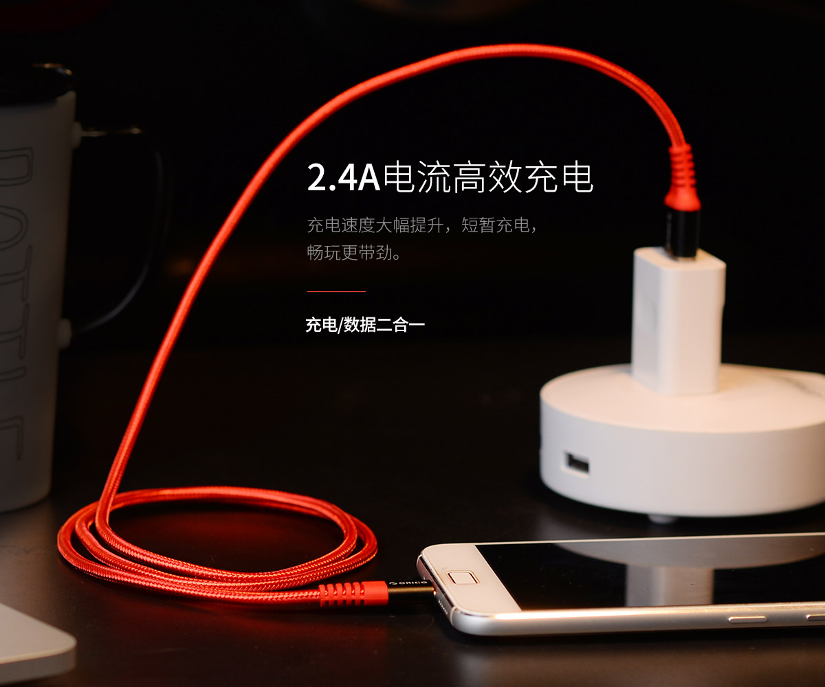 2.4A電流快速充電,充電數據二合一,凱夫拉編織線身,耐磨不起球。