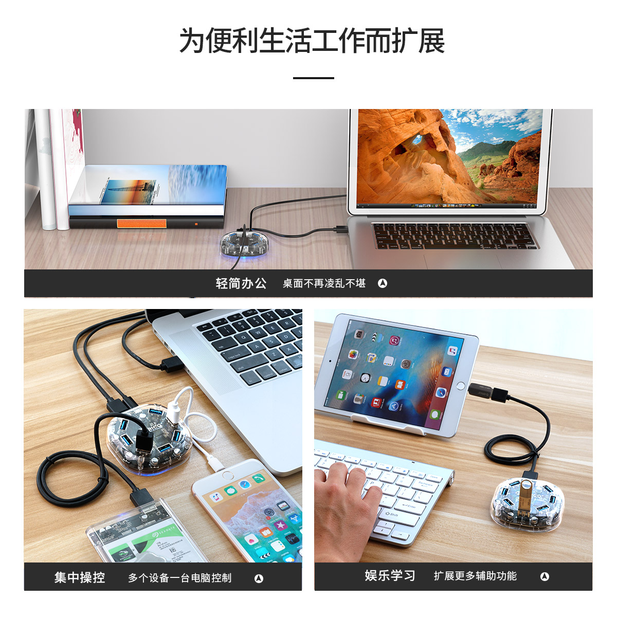 7口USB3.0透明桌面集線器,支持OTG拓展