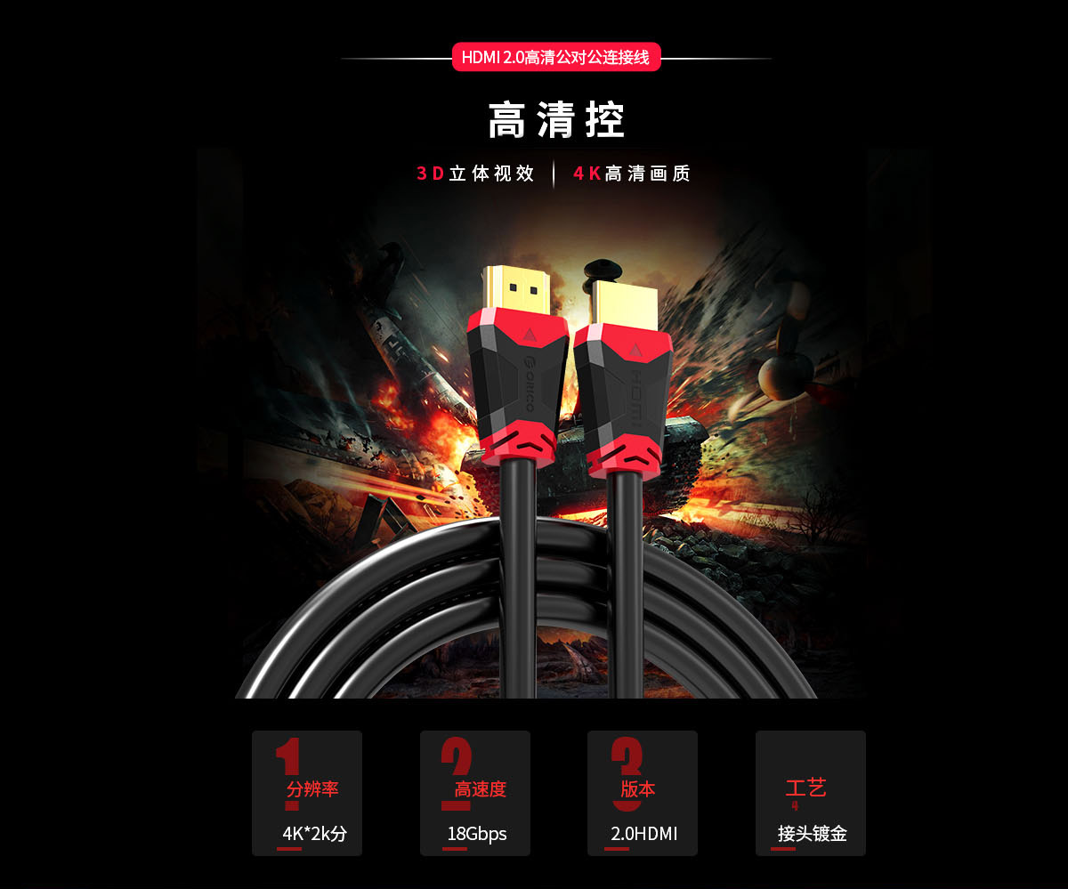 HDMI轉HDMI公對公影音傳輸線(紅色308)